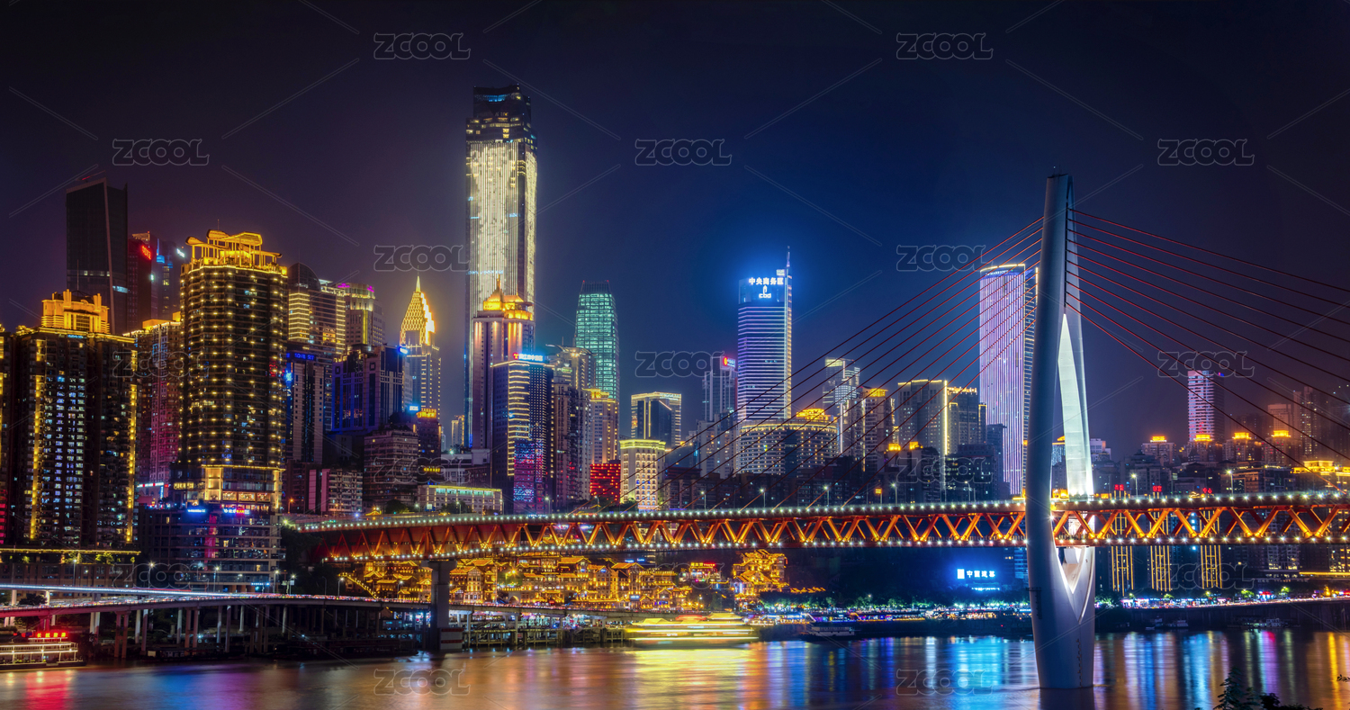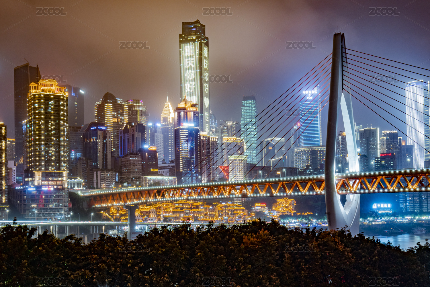 重庆地标网红景点千厮门大桥和洪崖洞的风光夜景