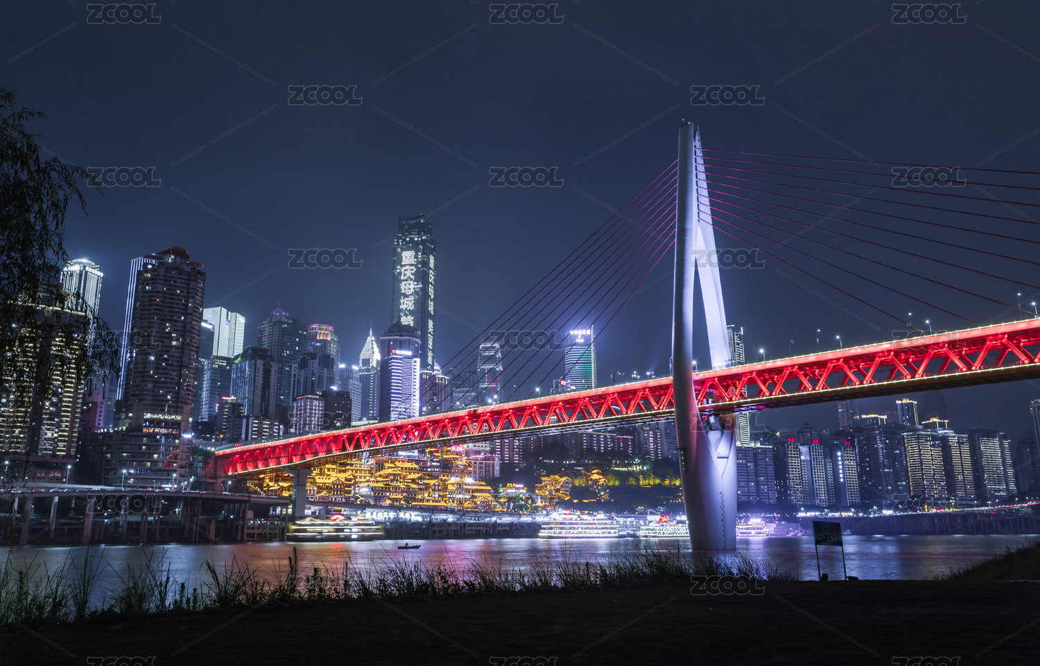 重庆渝中半岛城市建筑东水门长江大桥夜景