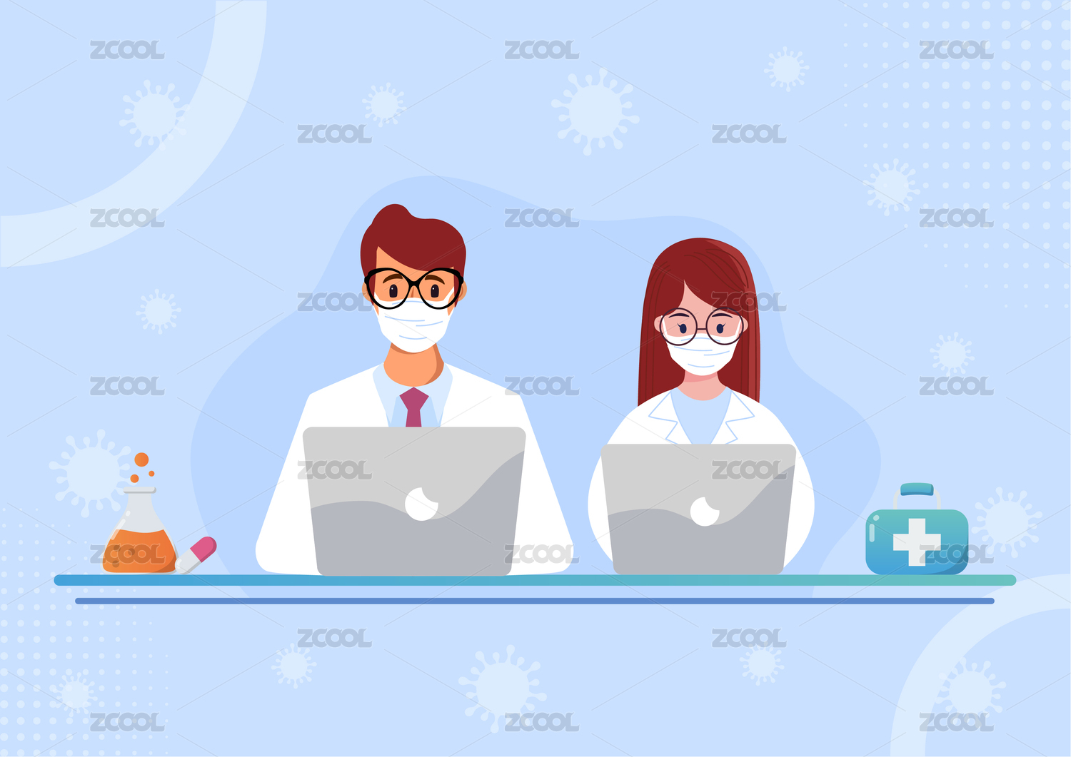 疫情医疗志愿者防护矢量插画