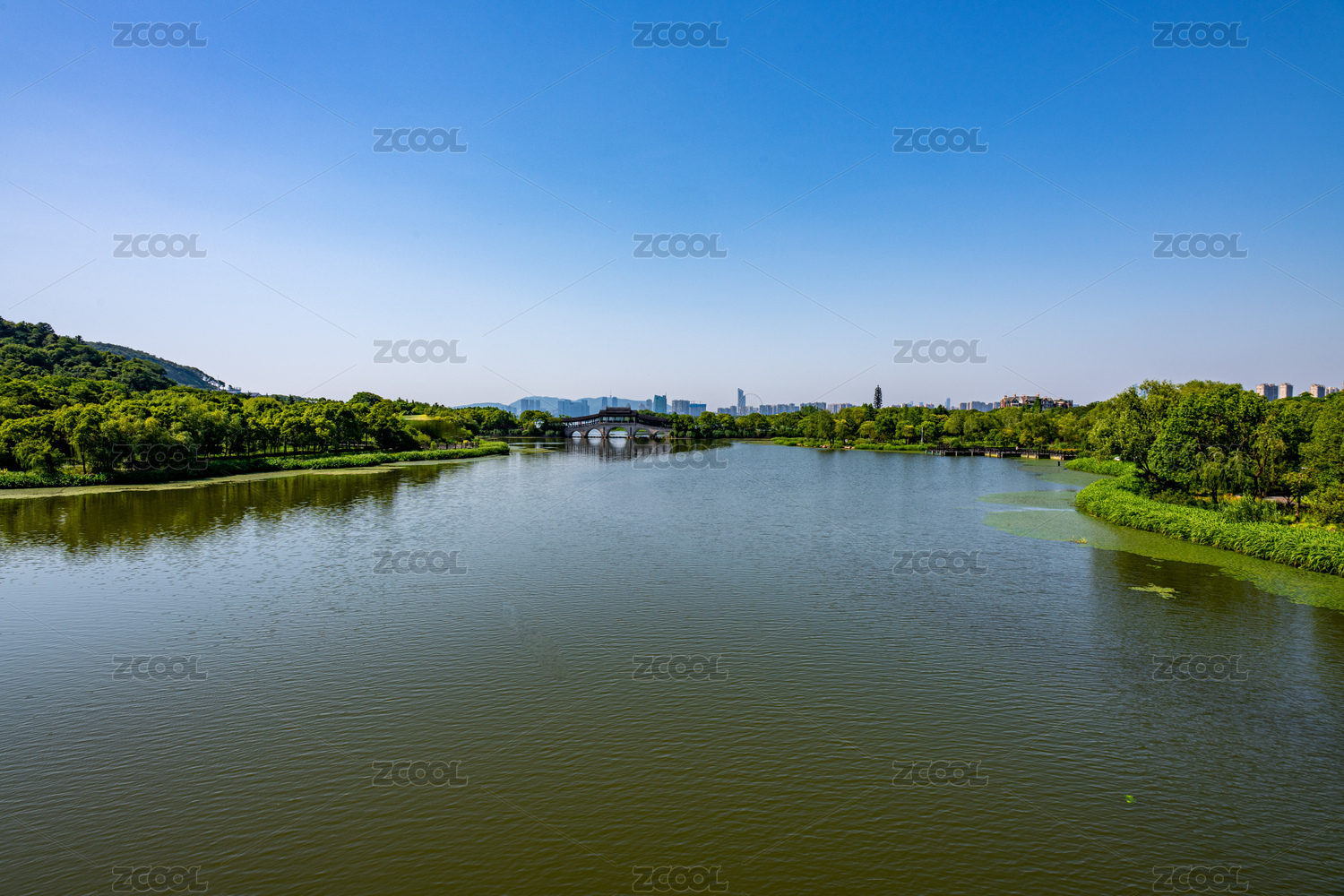 中国江苏无锡长广溪湿地公园景观石塘桥廊桥自然风光