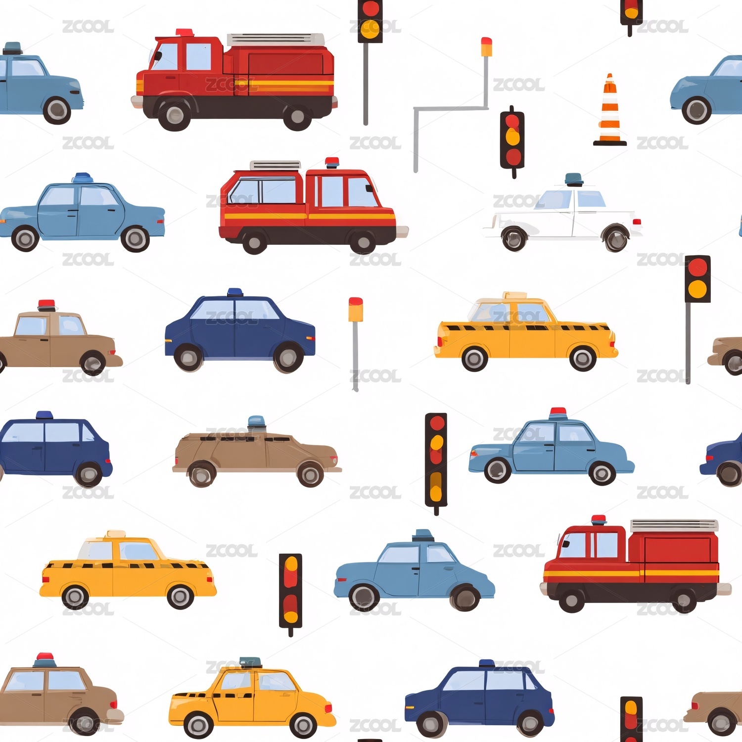汽车,彩色,卡通,交通工具,图案,手绘,婴童,印花,背景,无缝