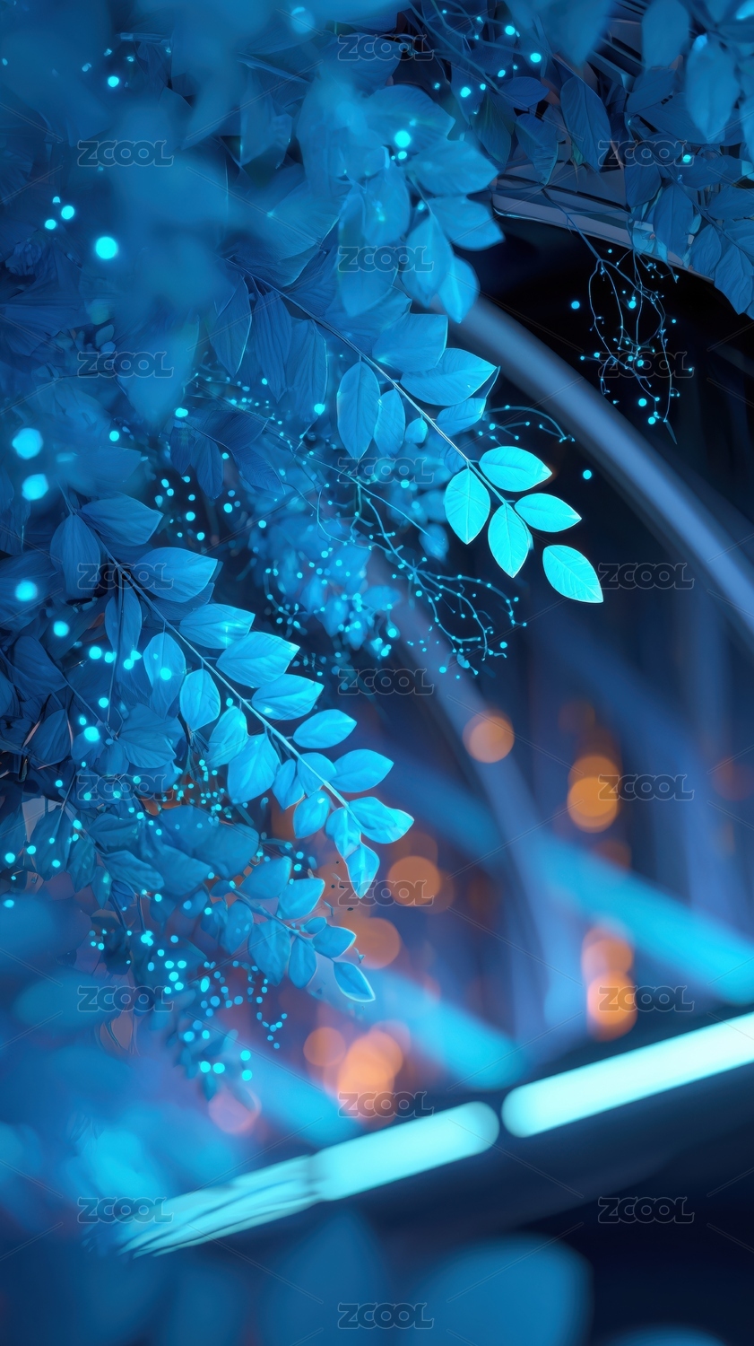科技未来蓝色梦幻植物围绕3D卡通建筑场景