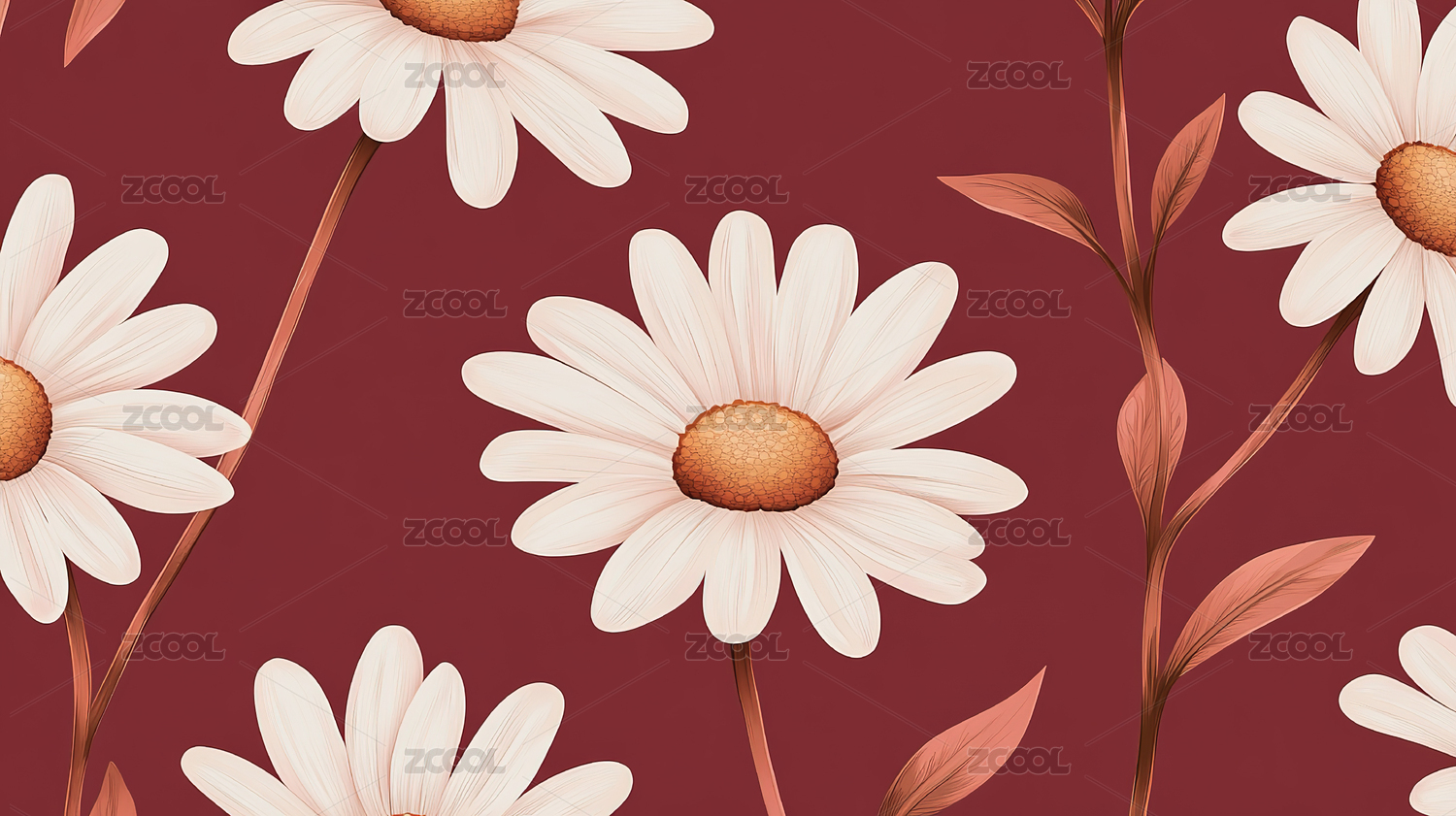 极简设计小雏菊花朵图案背景壁纸