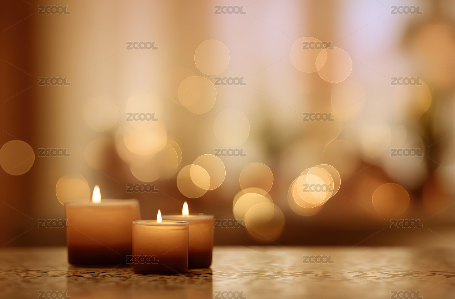 灯光照射下的蜡烛和桌子上的蜡烛的特写镜头