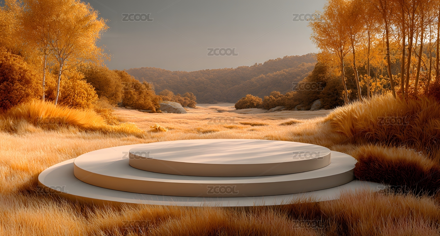 秋日圆形展台,户外自然氛围