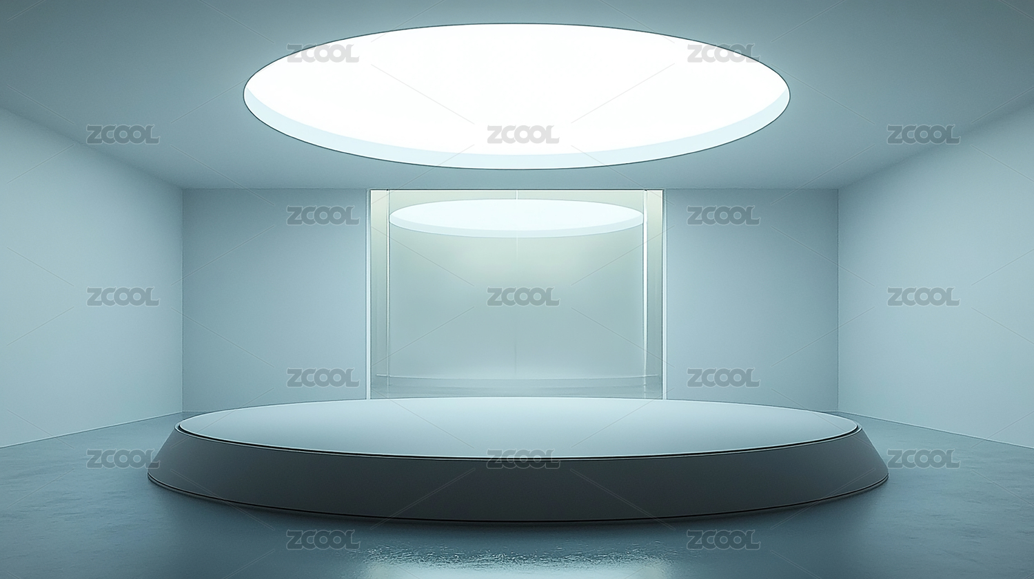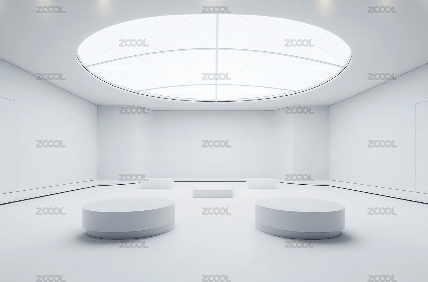 简约白色展厅中的圆形展台