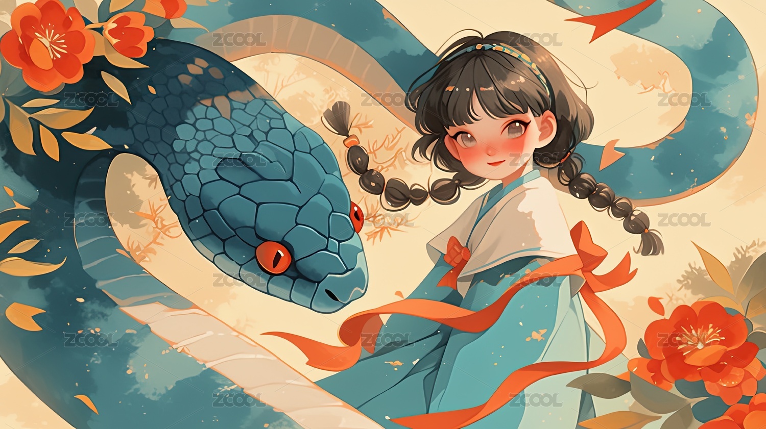 汉服女孩和蛇