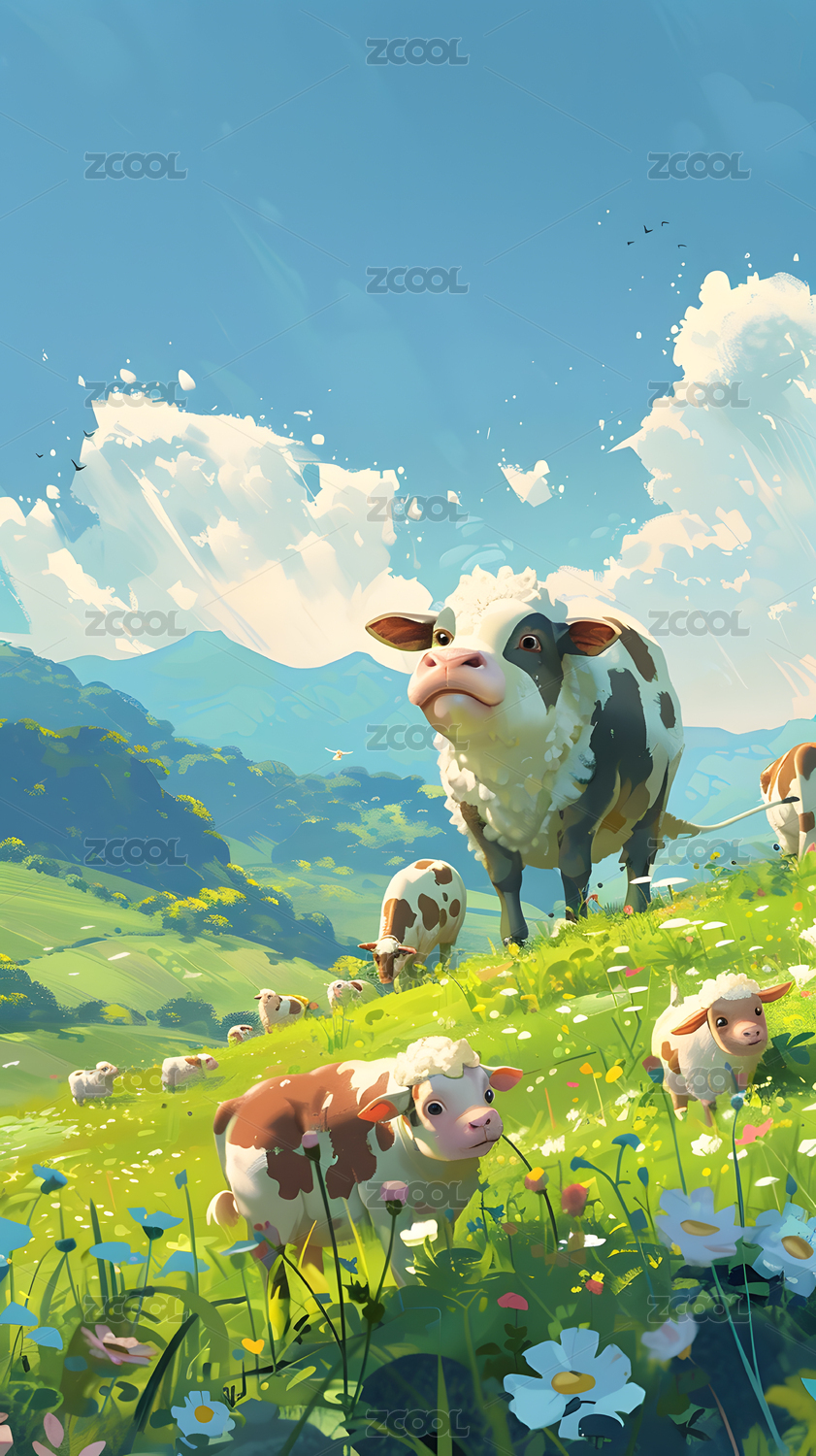奶牛梦幻艺术插画