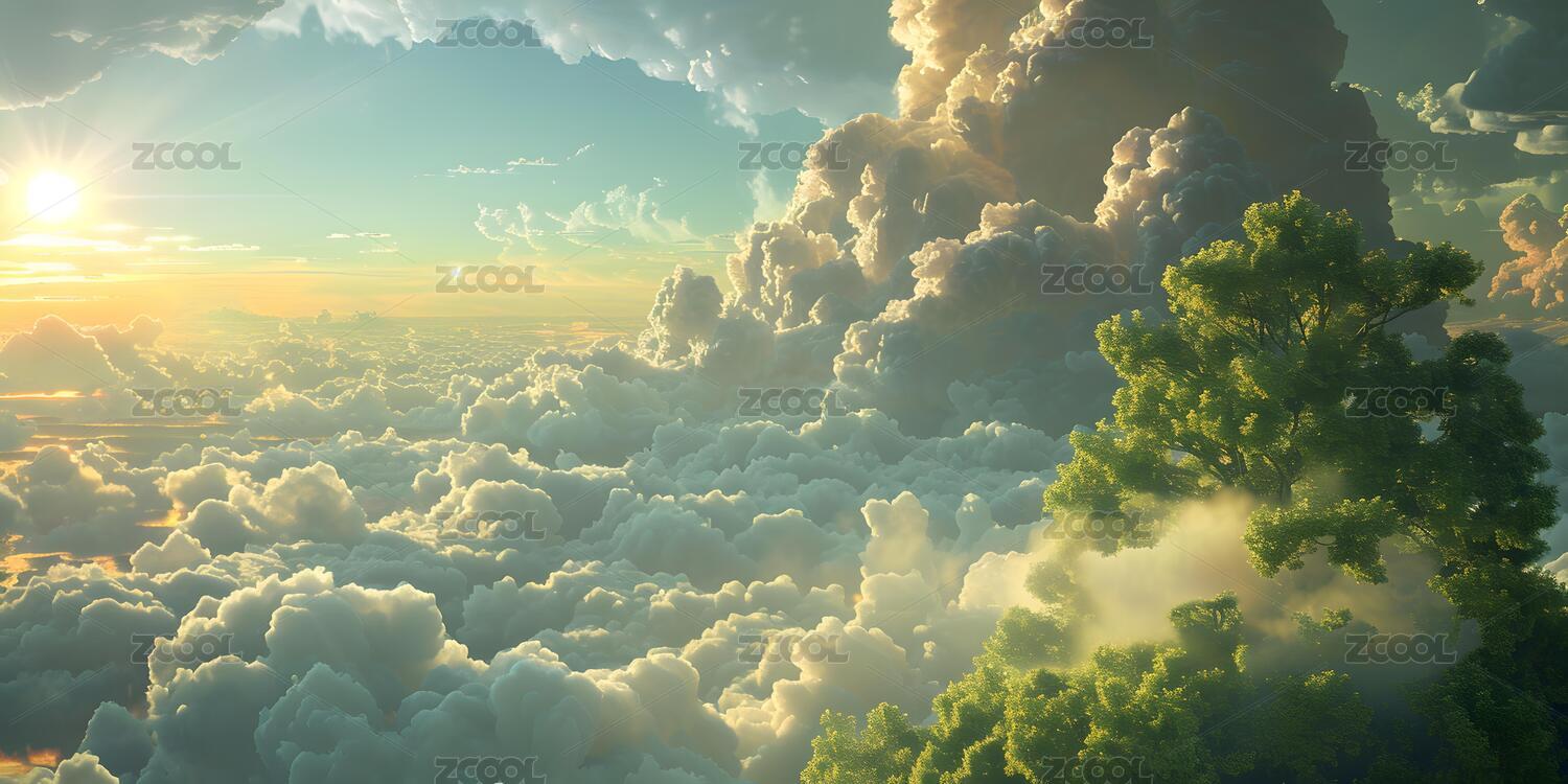 神话高耸入云枝叶茂盛的世界树3D立体插画