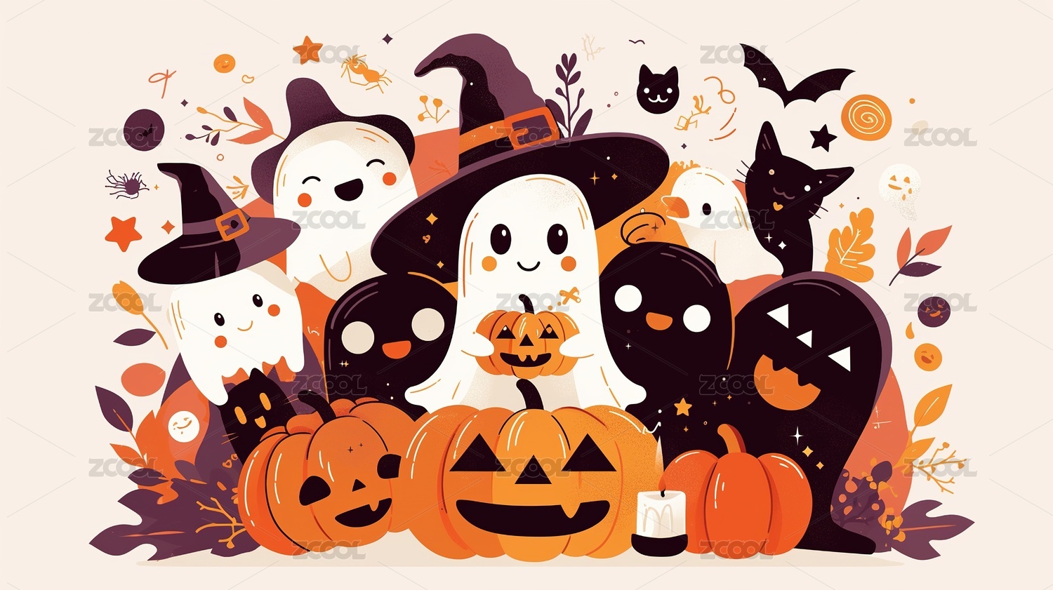 万圣节,蝙蝠,枯树,树枝,骷髅,幽灵,南瓜,女巫,夜晚,怪异
