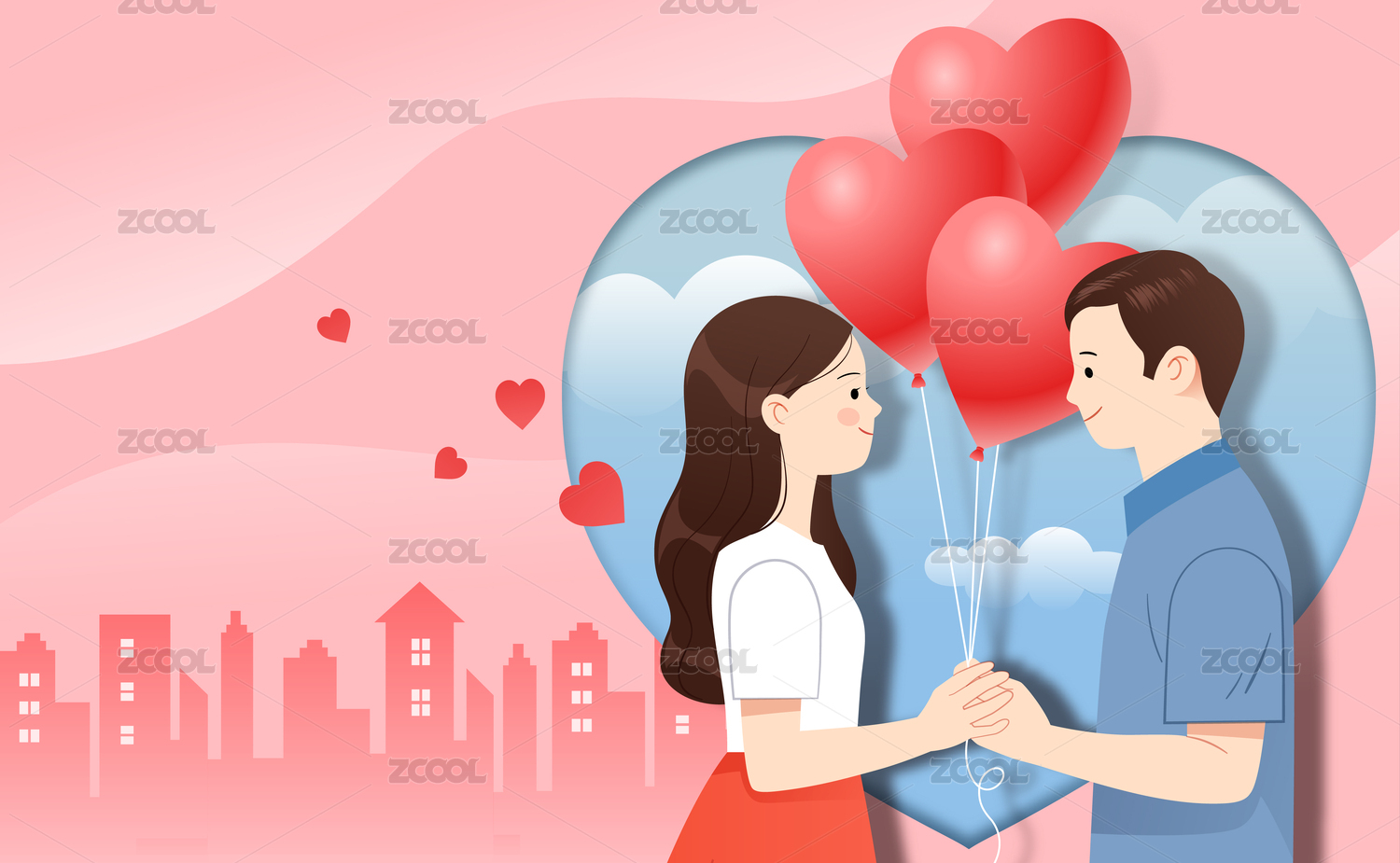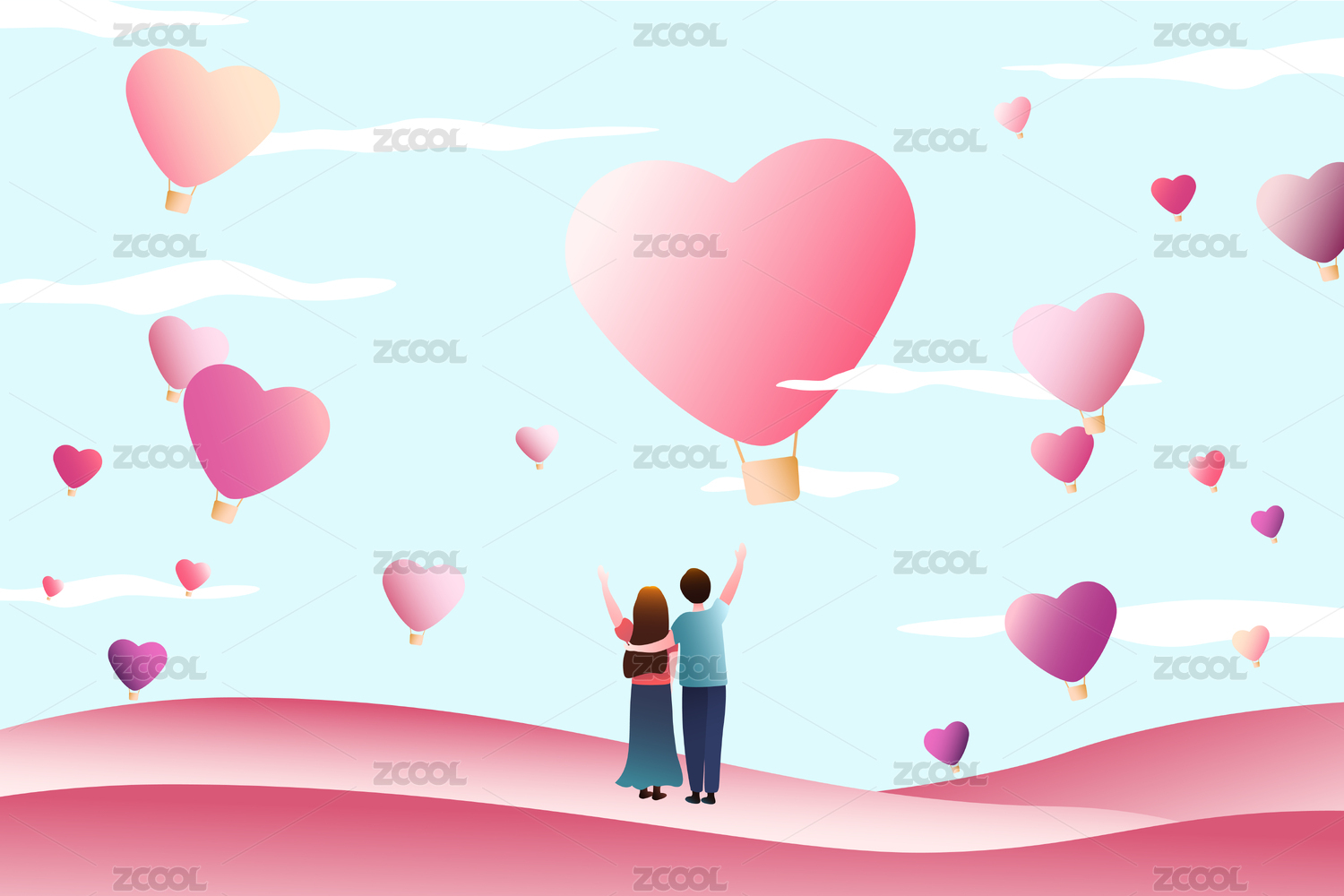 情人节七夕520爱情插画情侣爱心热气球