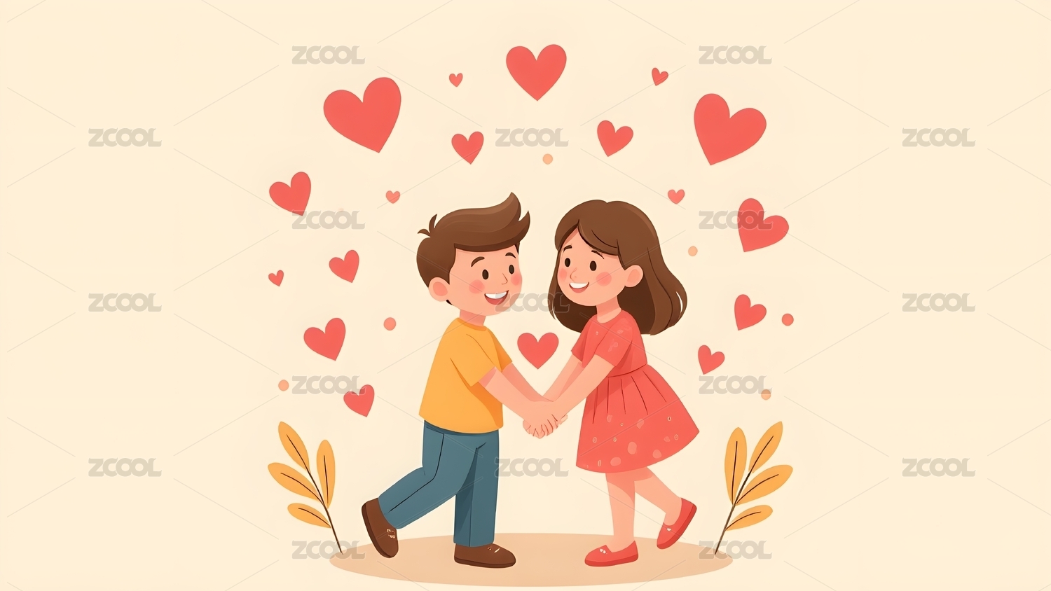 情人节里手拉手的一对情侣