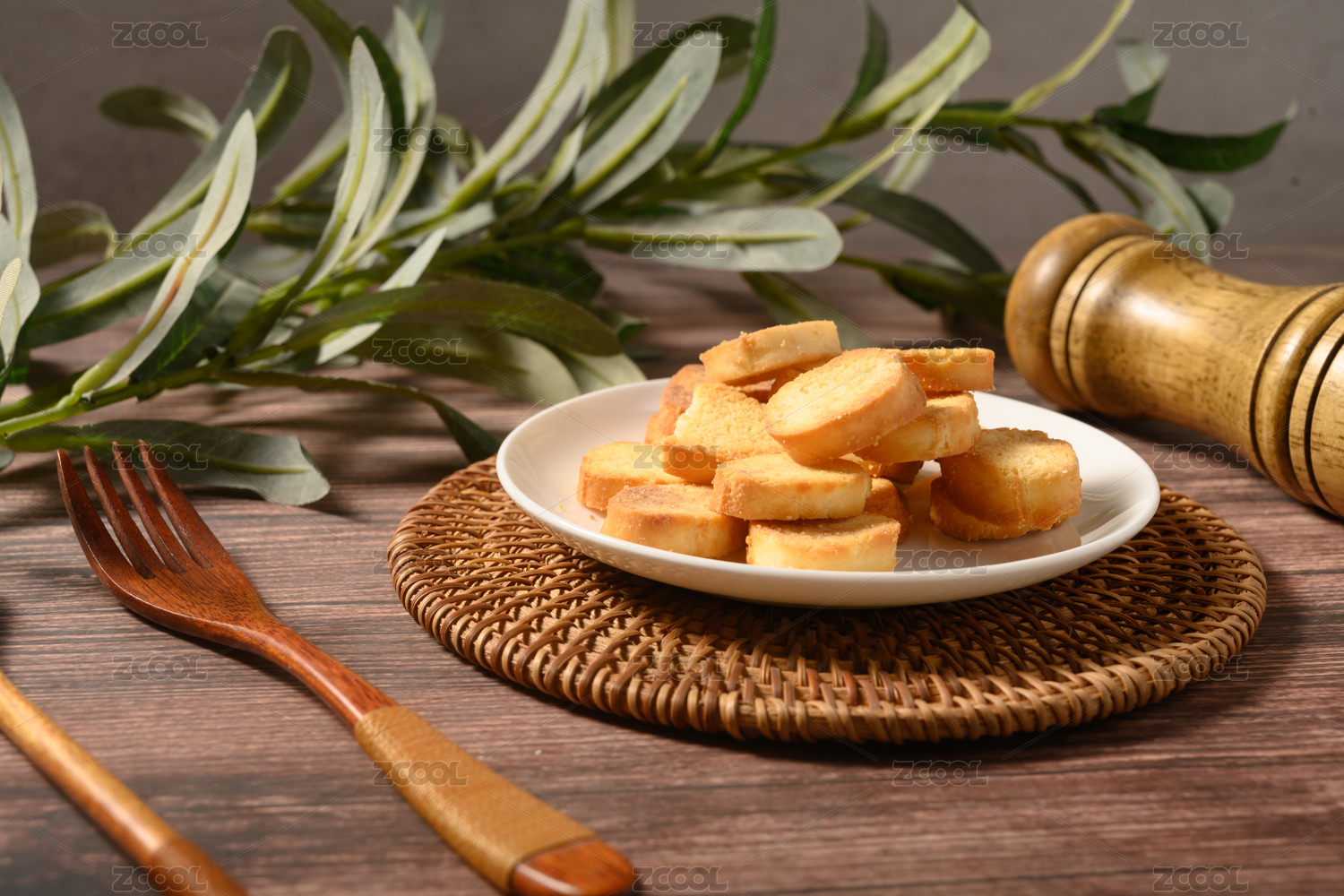 桌面上的盘子里的美味可口的香靠馍片