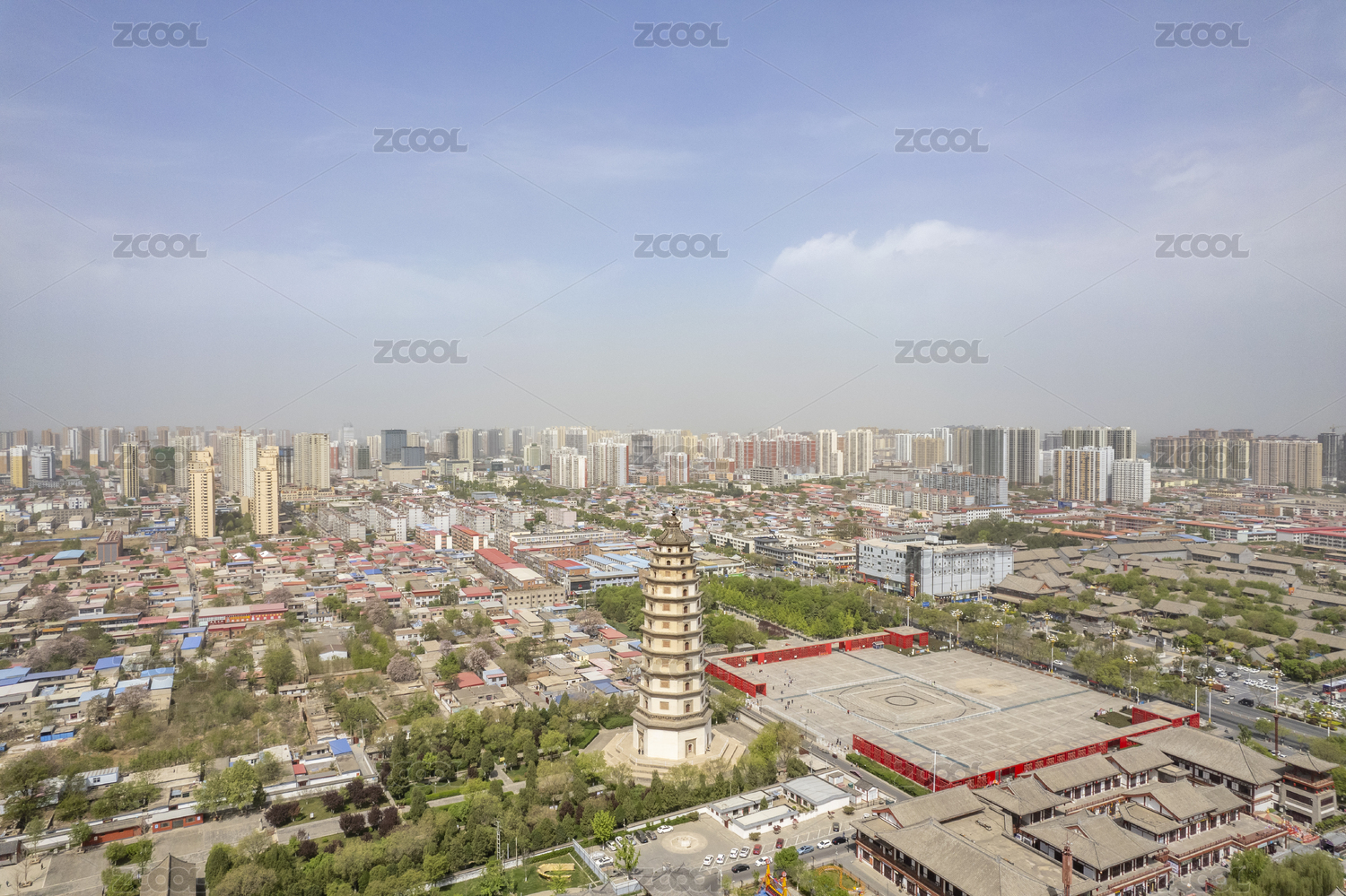 航拍河北省石家庄市正定县开元寺和须弥寺