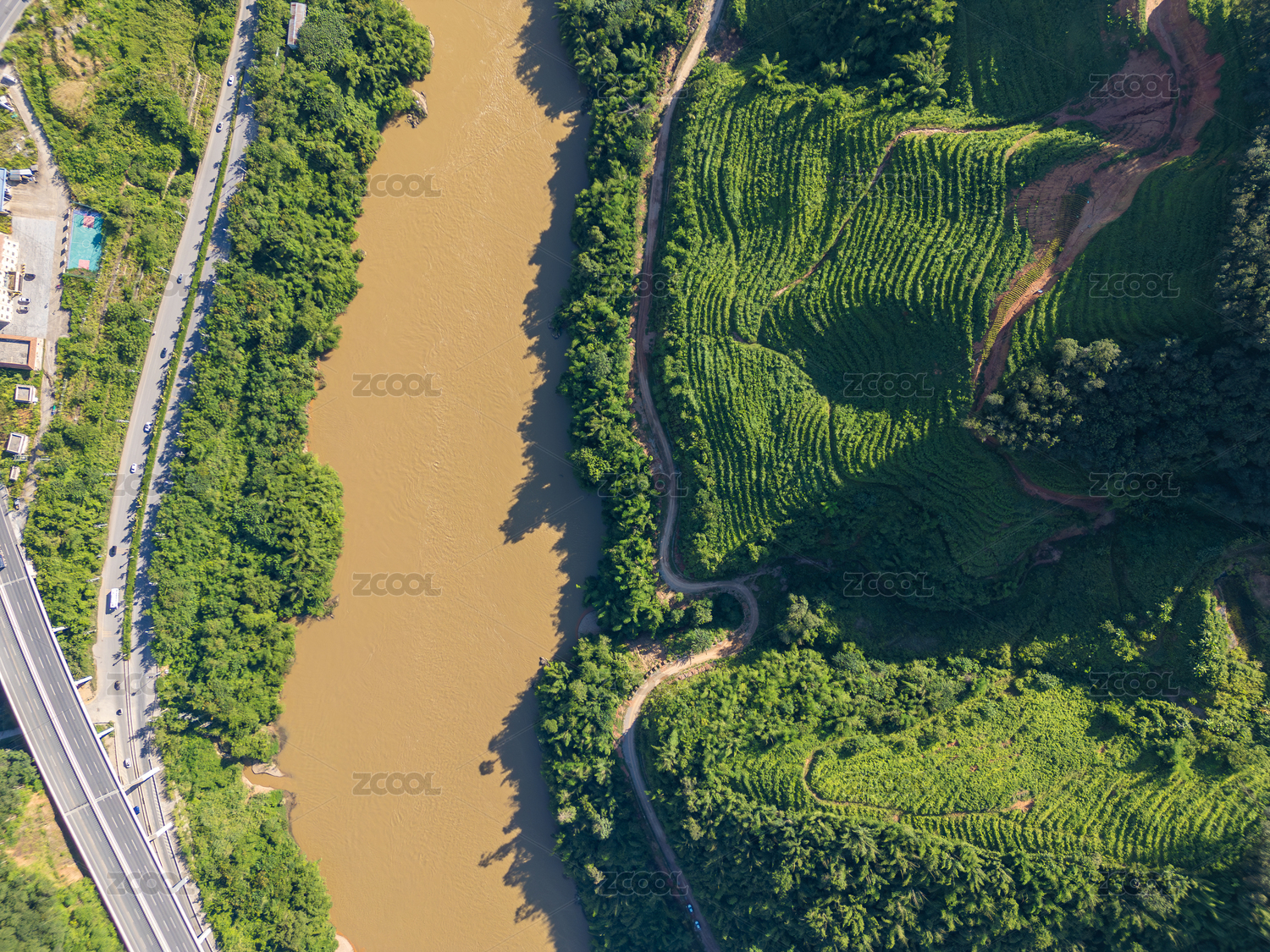 航拍澜沧江山水公路自然风光