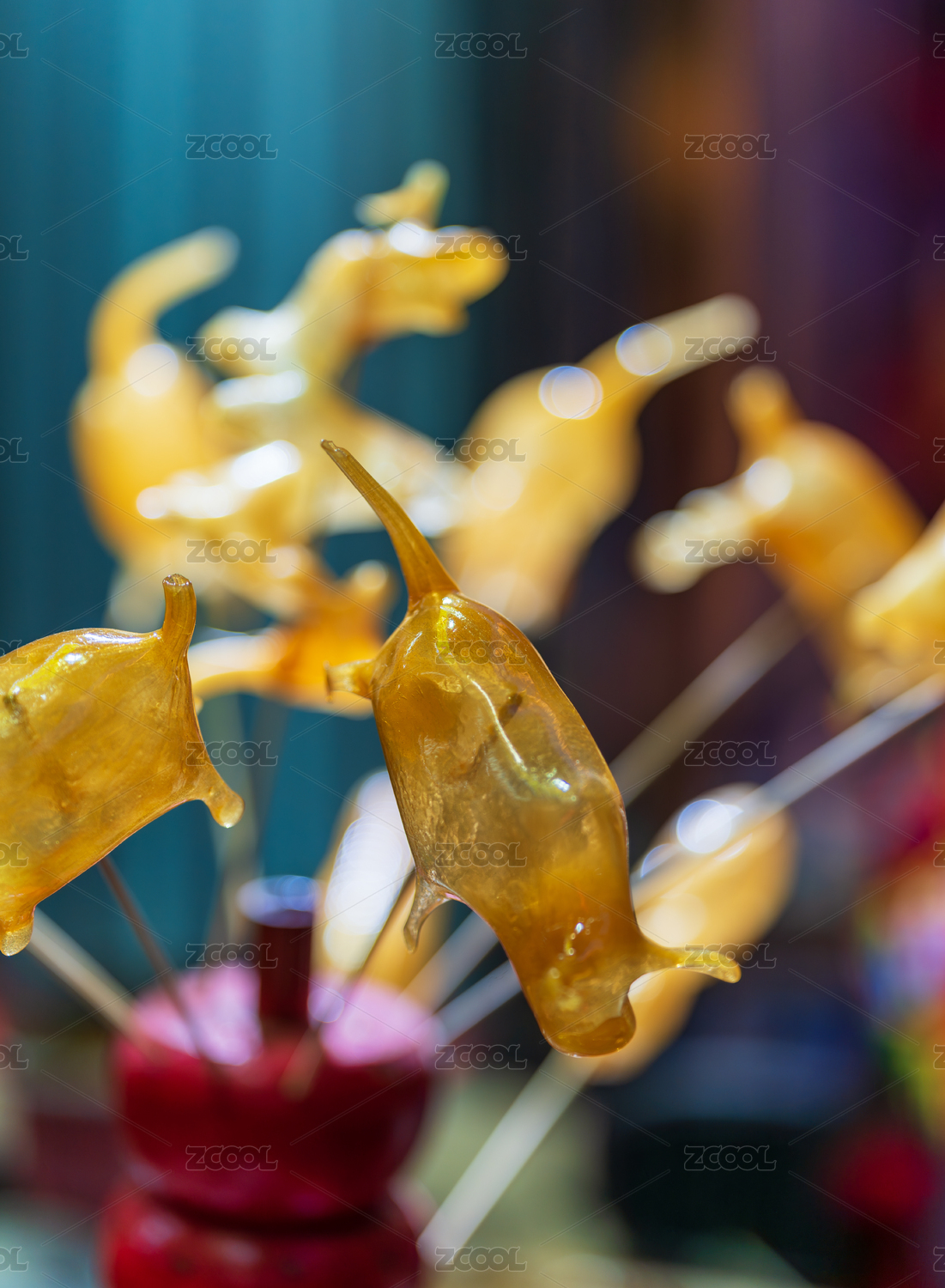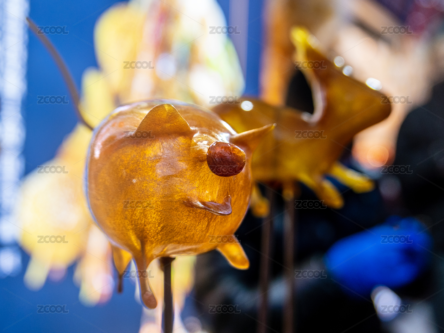 北京冬季春节过年庙会的传统手艺小吃吹糖人