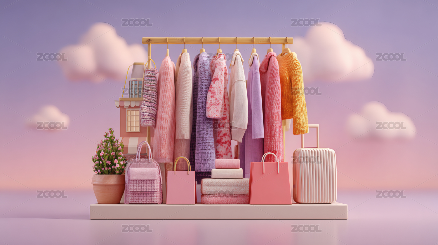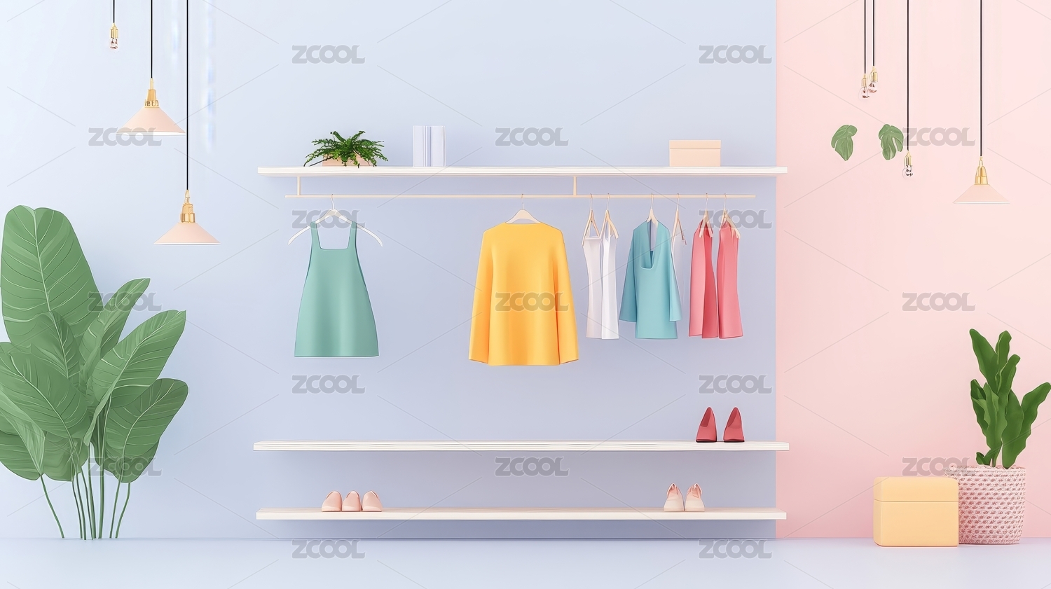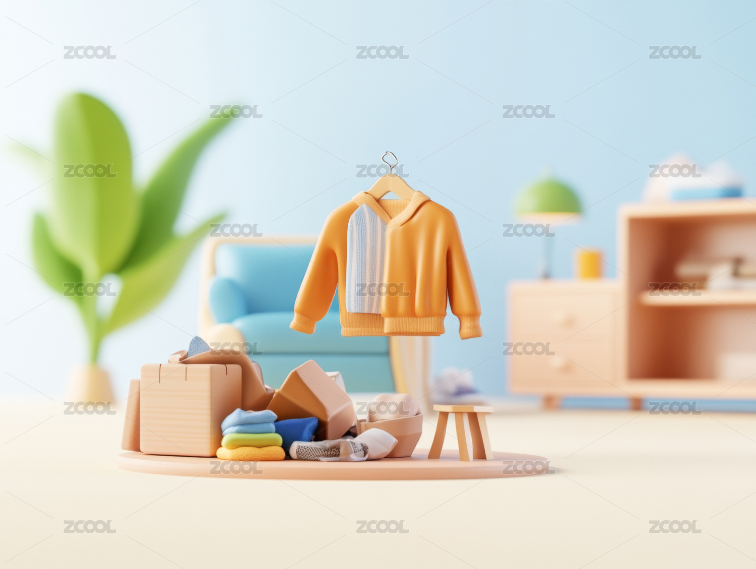 蓝色,背景,简约,电商,时尚,衣服,展示,陈列,装饰,黄色