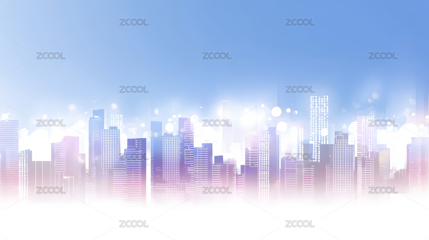 城市, 夜景, 建筑, 灯光, 雾气, 蓝色, 现代, 模糊, 光斑, 天际线