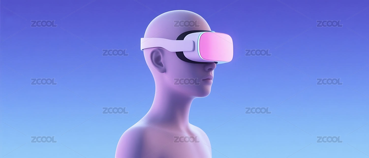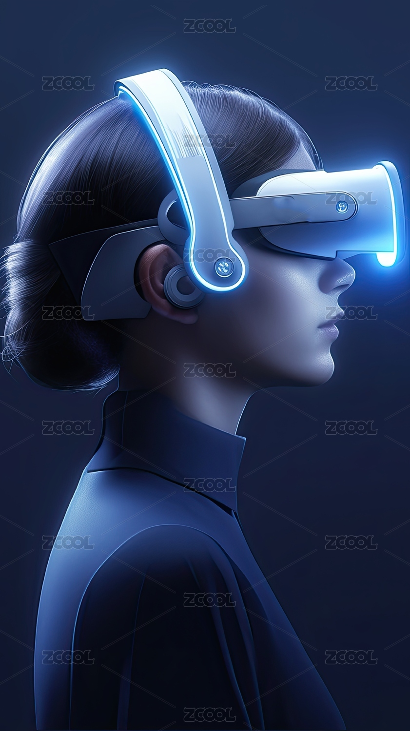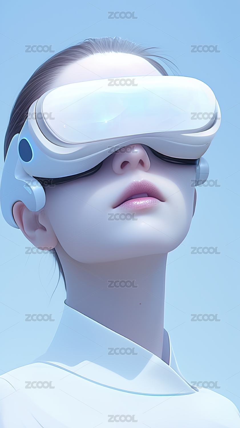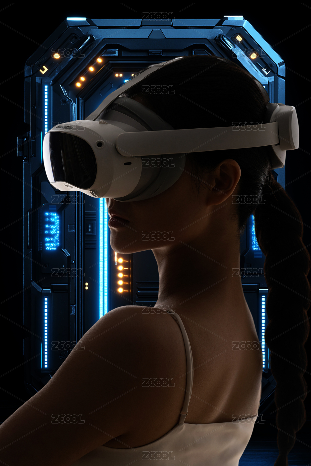 赛博朋克风头戴VR眼镜的女生