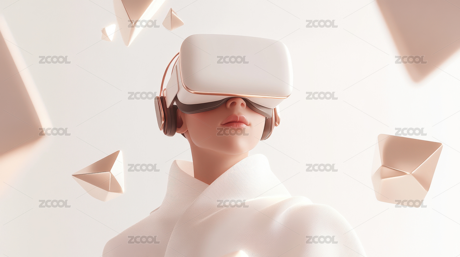 佩戴未来感虚拟现实头盔的女性