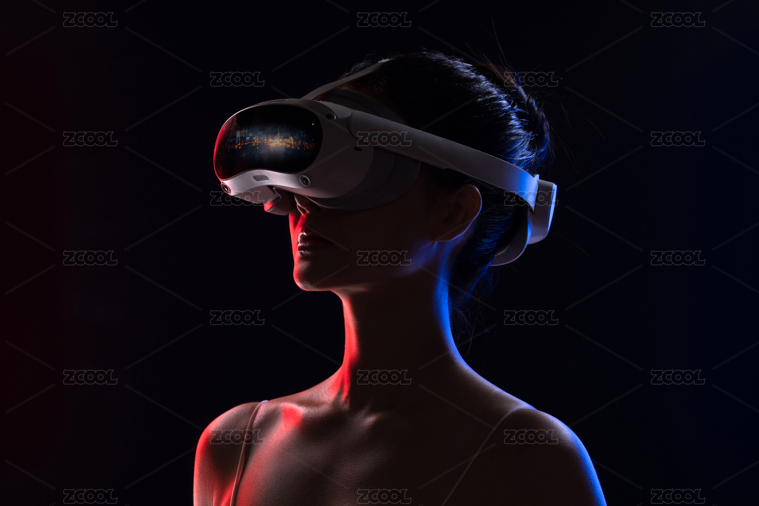 佩戴虚拟现实头盔的女性侧脸