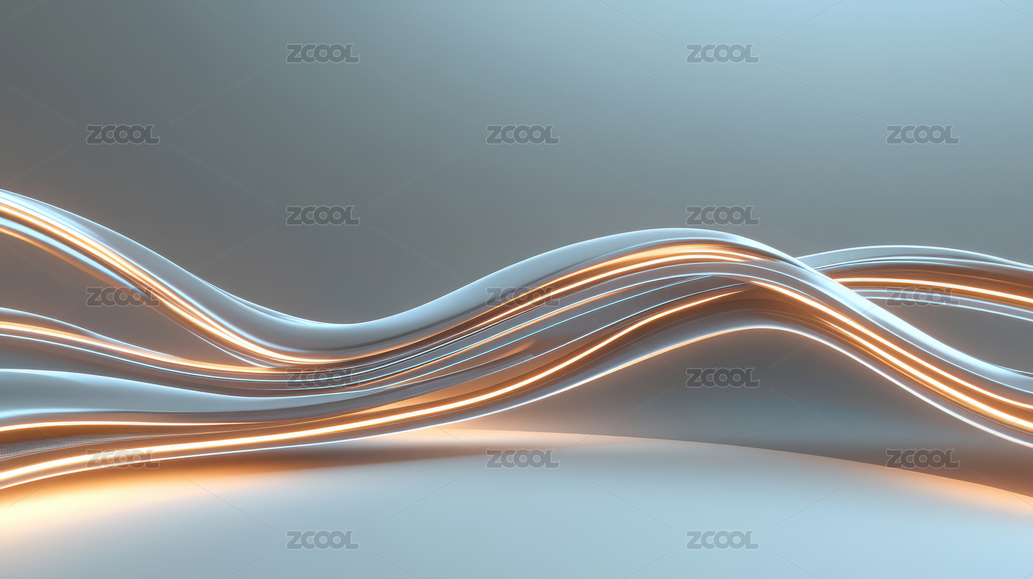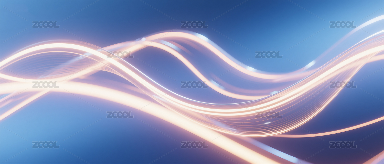 蓝橙相间光带在蓝色背景前呈现波浪造型