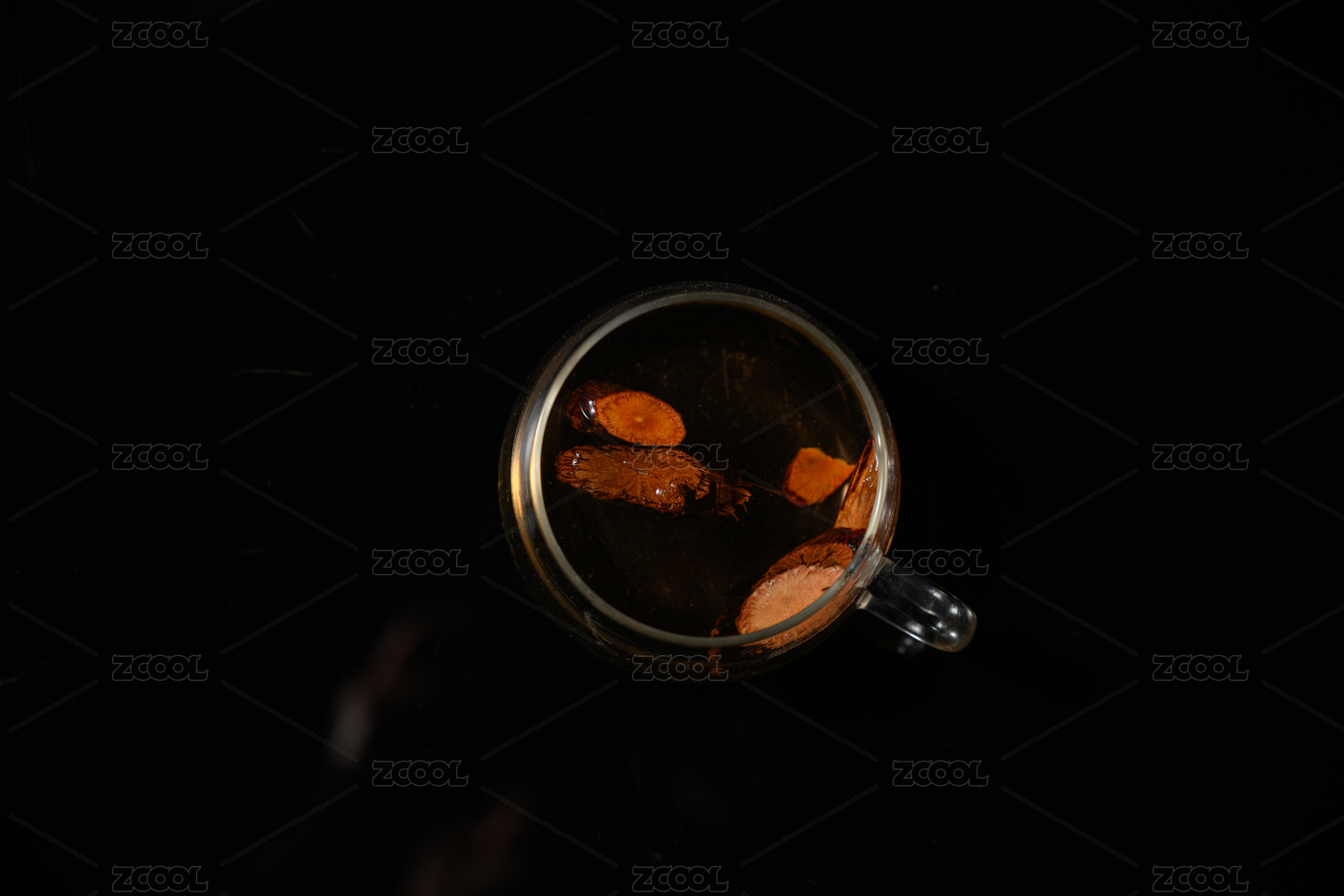 桌面上的杯子里的甘甜可口的夜交藤茶
