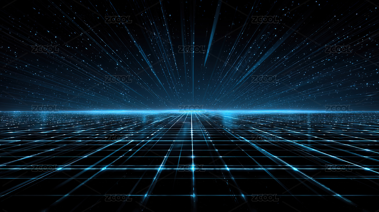深色背景蓝色网格光线延伸向远方