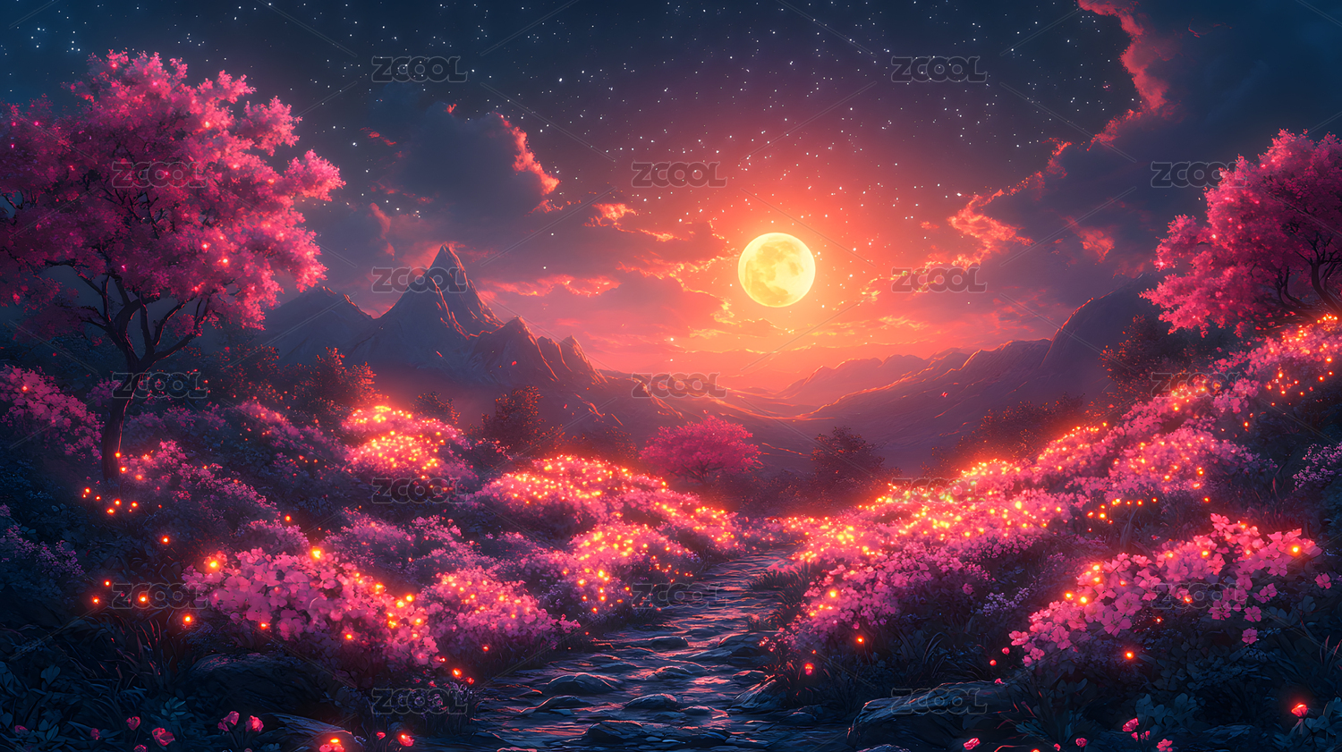 梦幻山谷萤火花海月夜