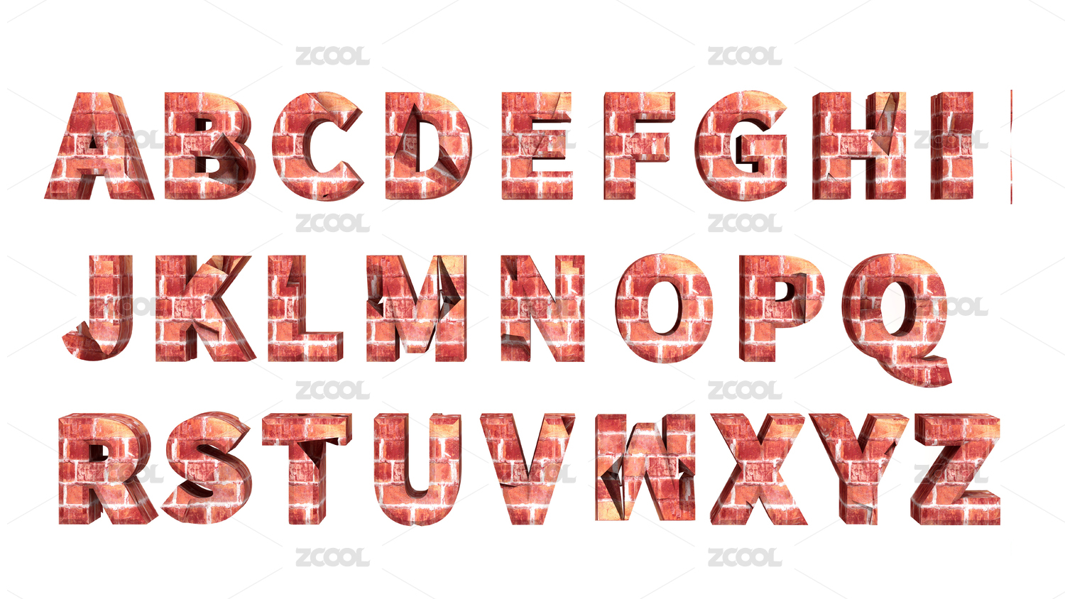 卡通风格的三维立体的英文26个字母字母表,白底抠图素材