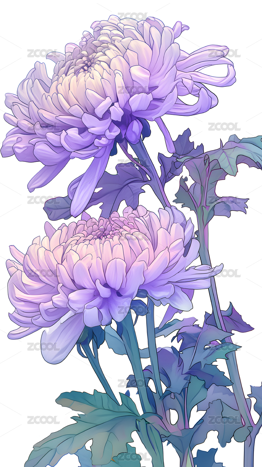 国潮菊花植物插画