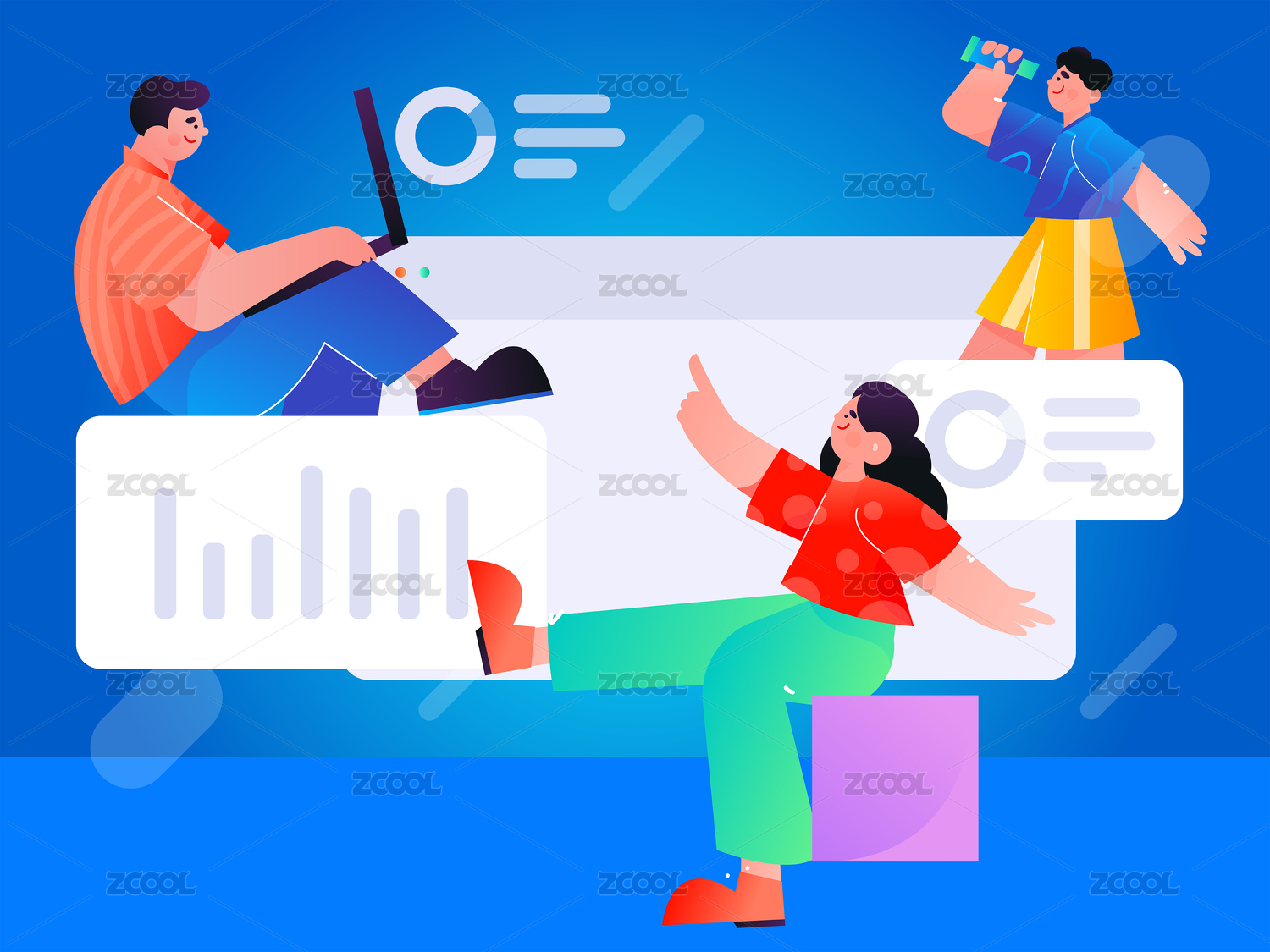 蓝色背景商务插画