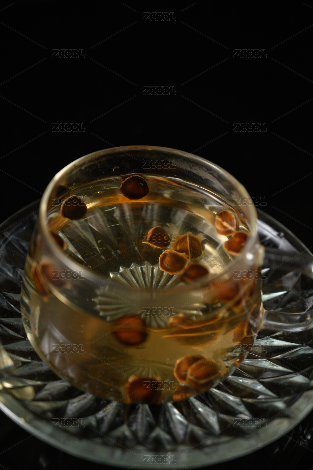桌面上的杯子里的甘甜可口的辣木籽茶