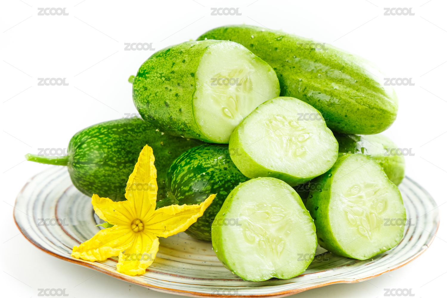 白底上放着旱黄瓜