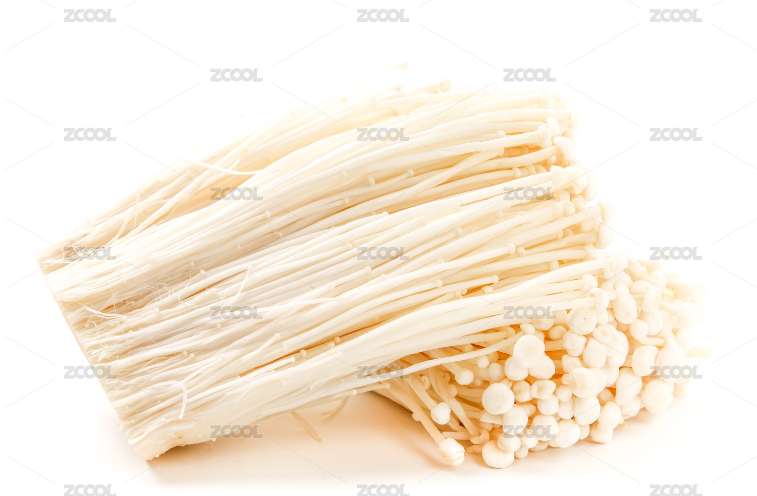 成捆的金针菇放在白色的背景上