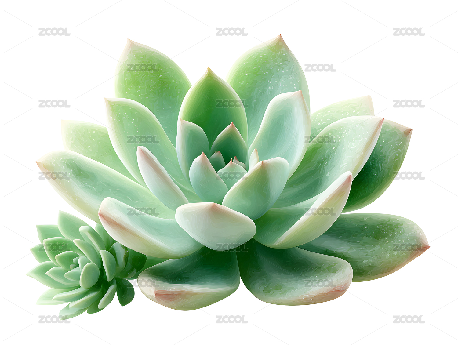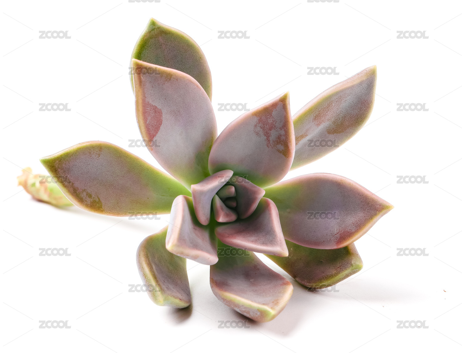 白底上长势旺盛的多肉植物晚霞和紫珍珠