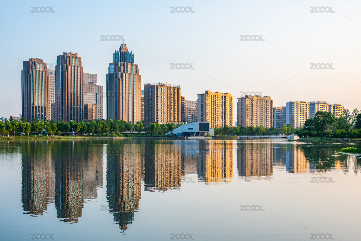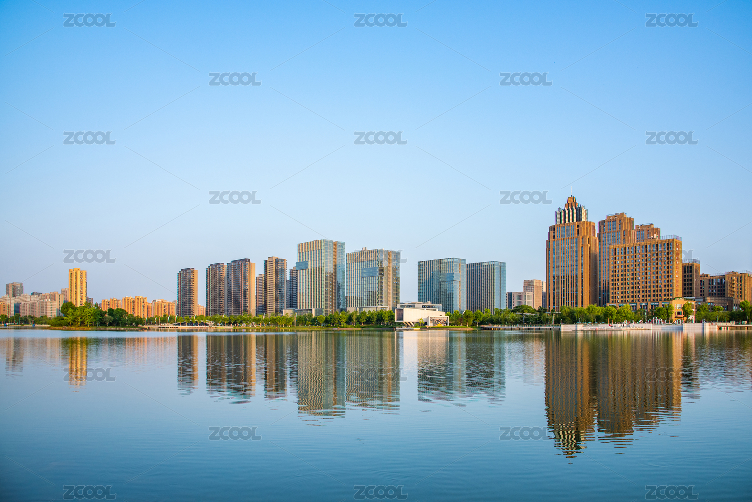 浙江杭州钱塘区大江东东沙湖公园畔建筑风景