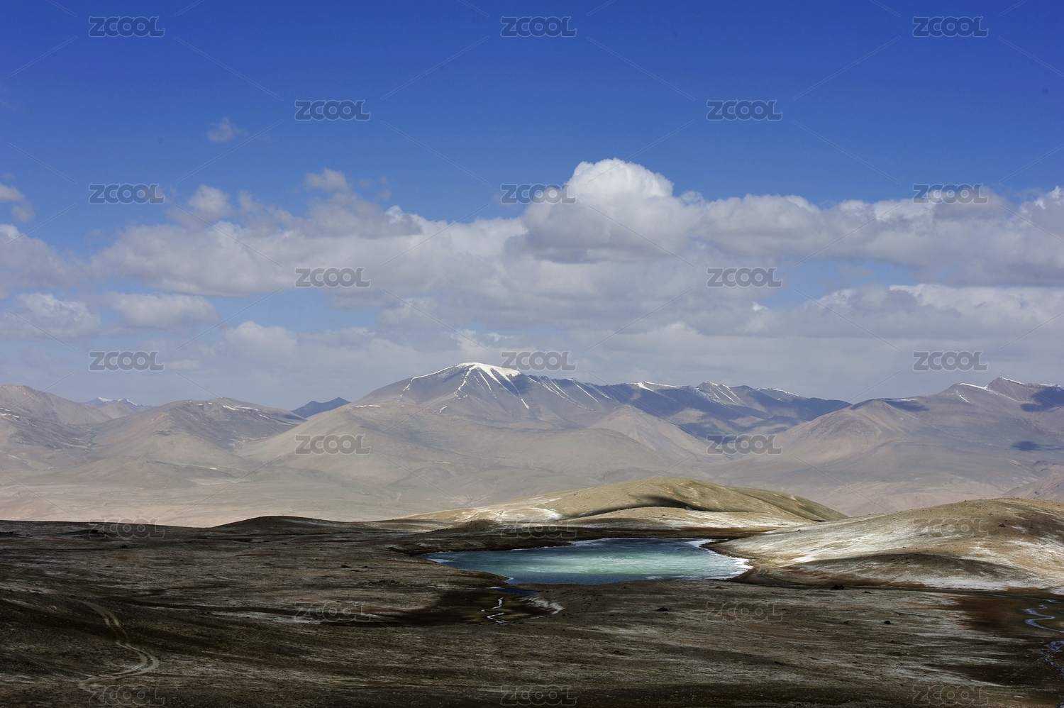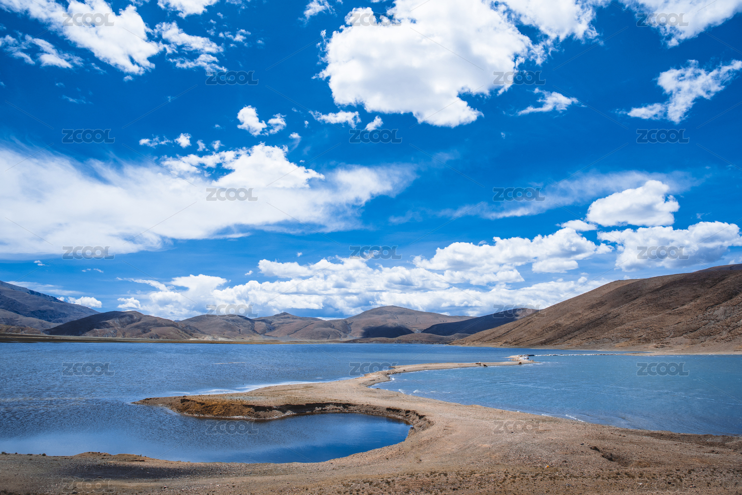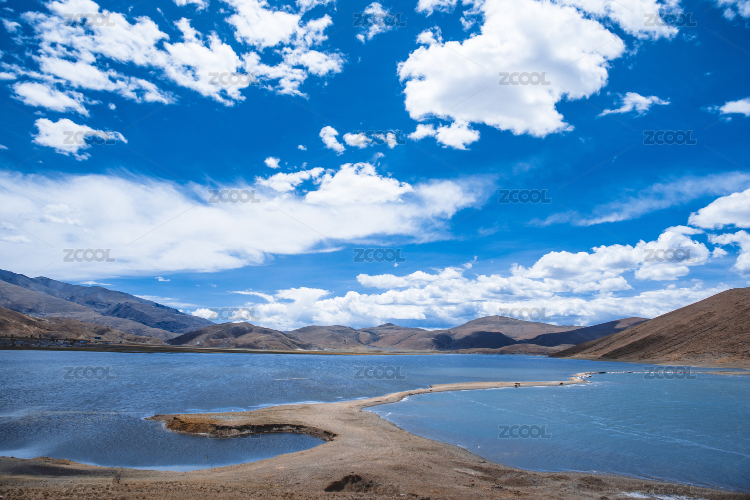蓝天白云下的中国西藏高原湖泊