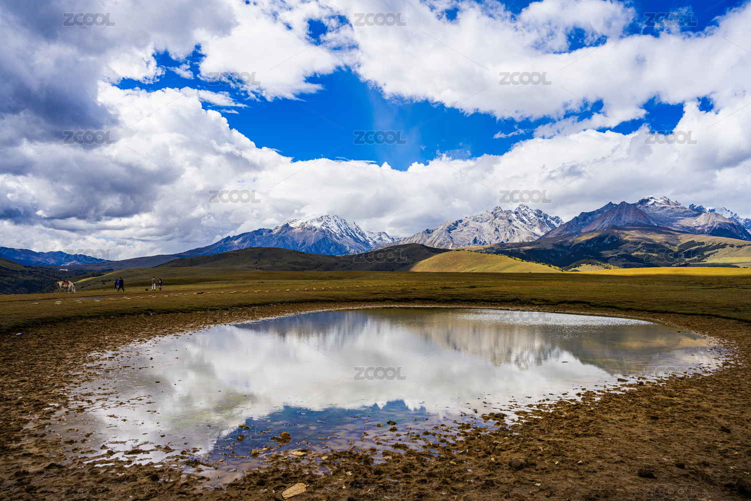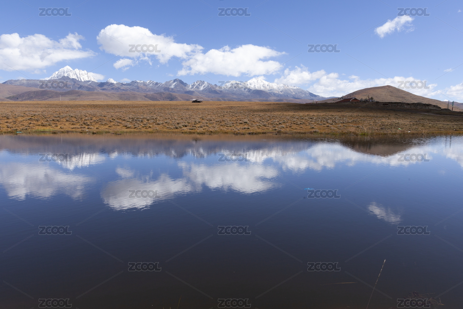 中国西藏山南哲古草原早晨雪山倒影