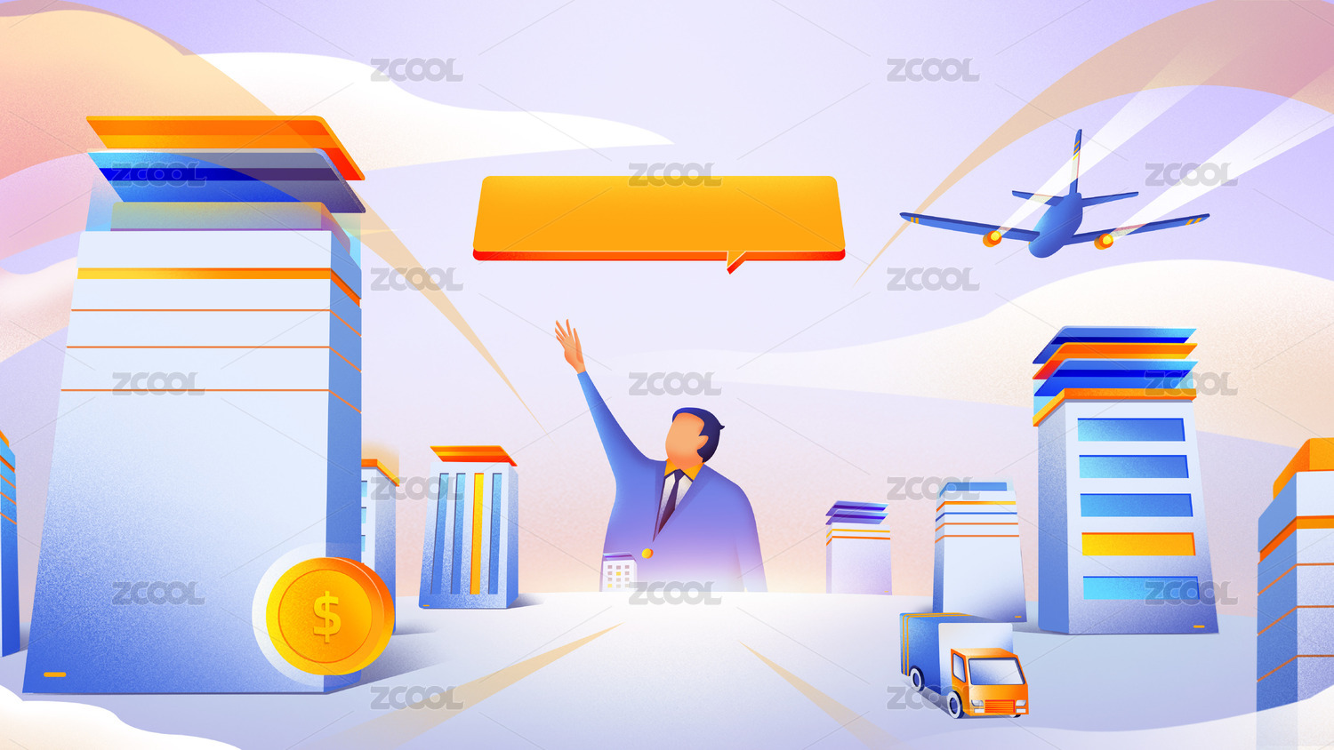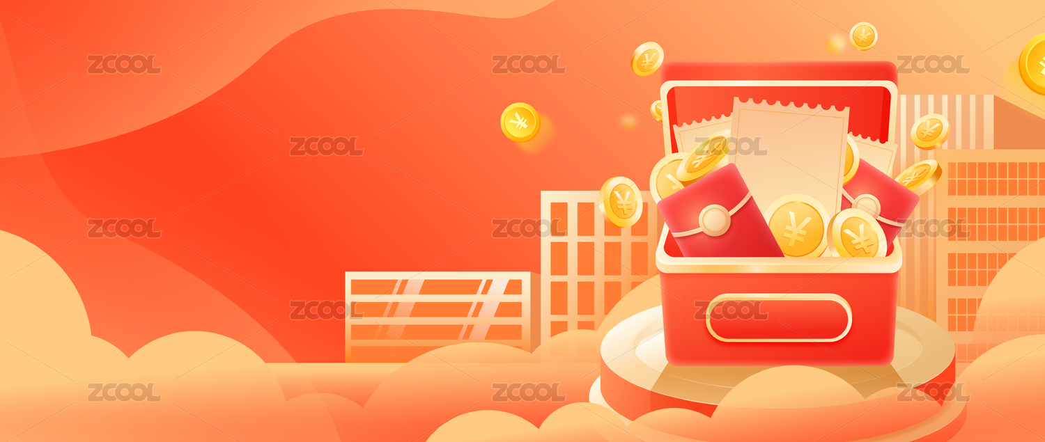 卡通手绘金币推广活动金融旅游闪屏海报插画