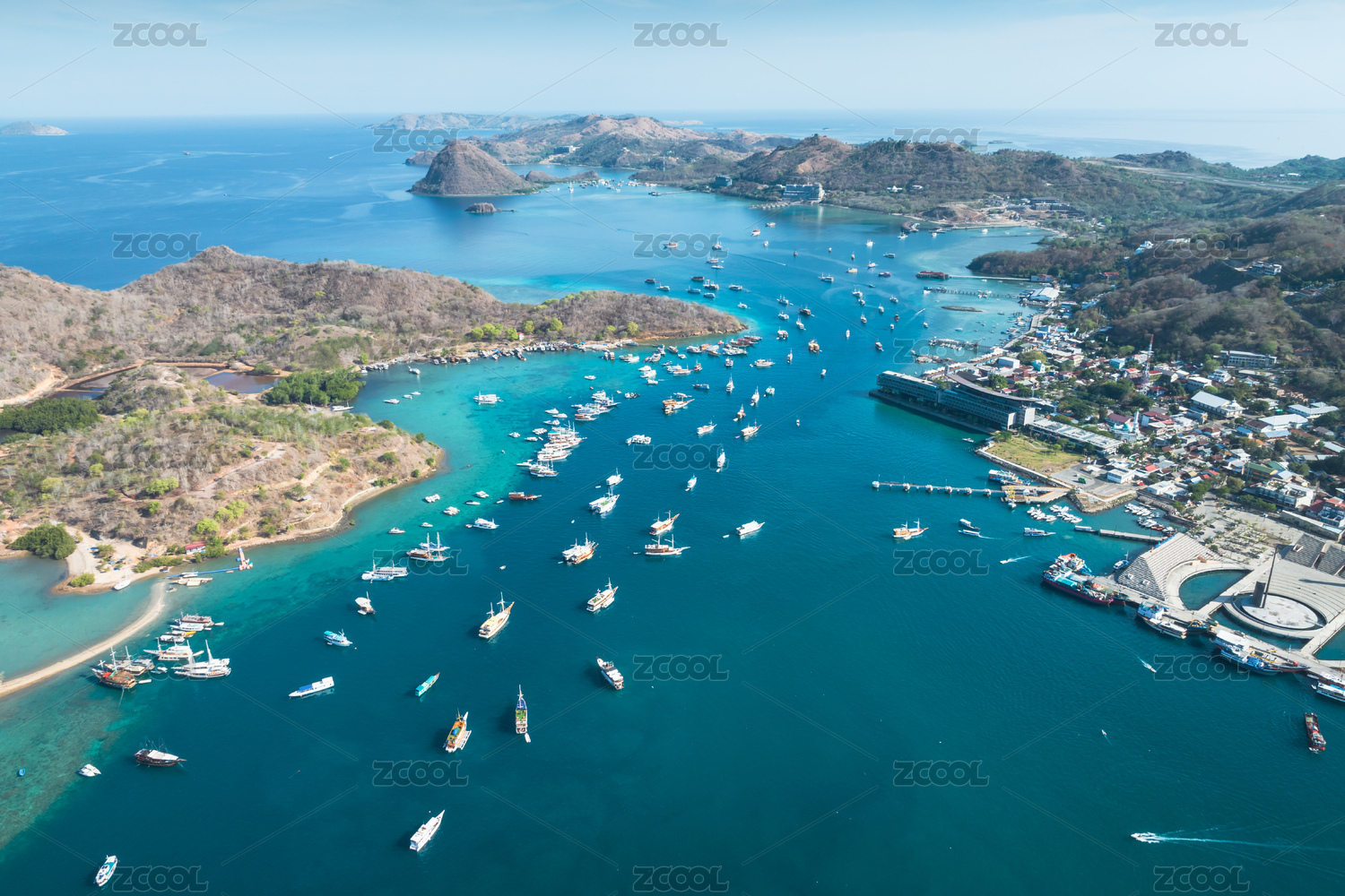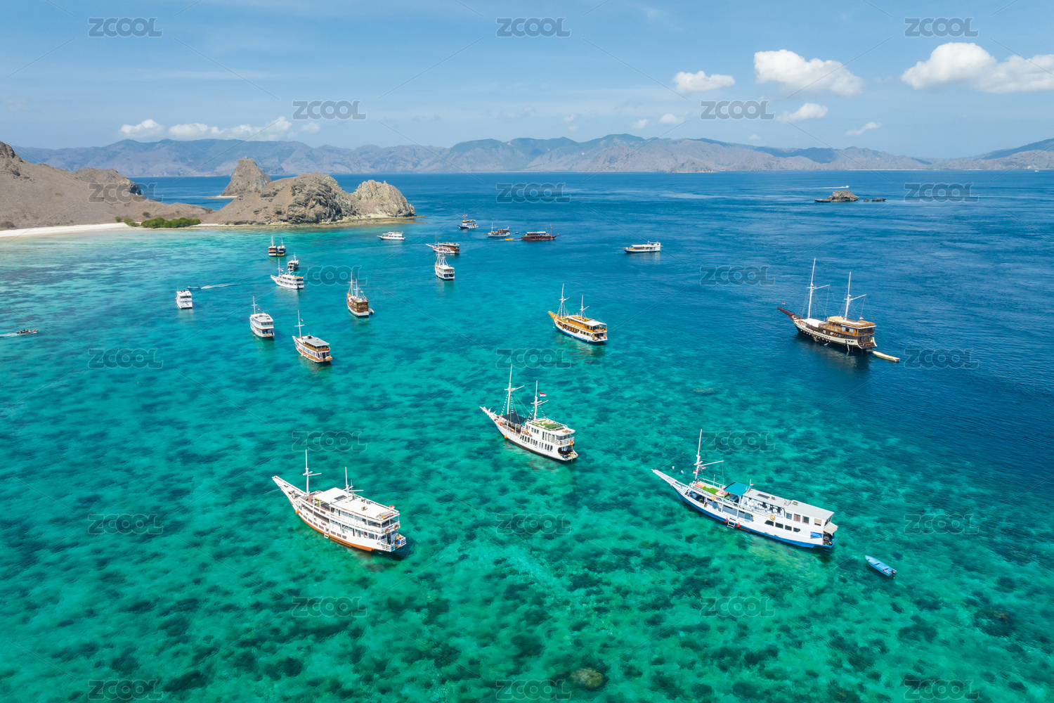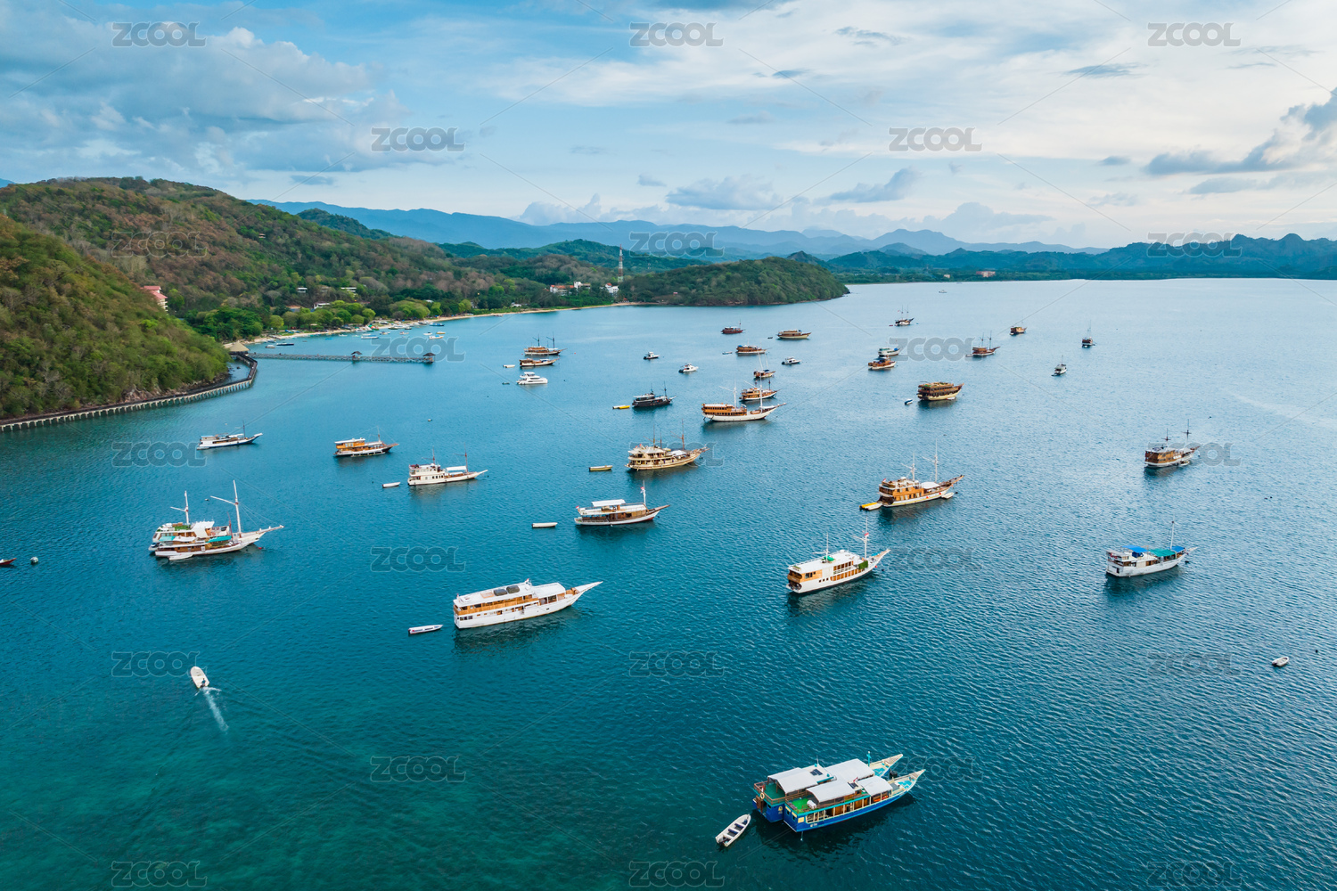 印度尼西亚科莫多拉布汉巴焦海上船舶航拍风