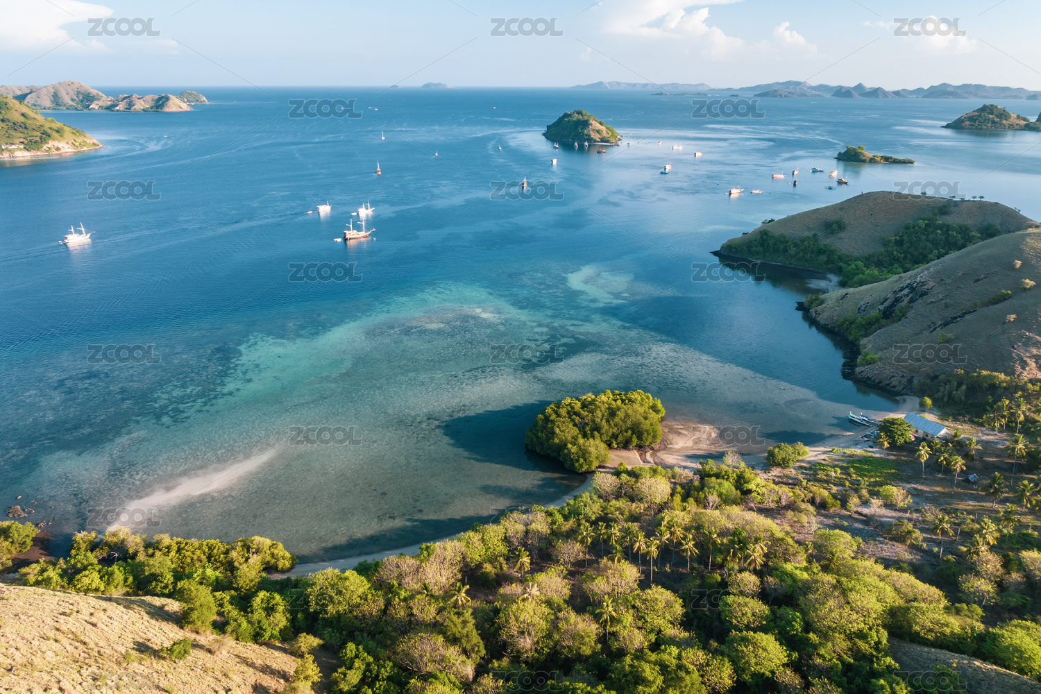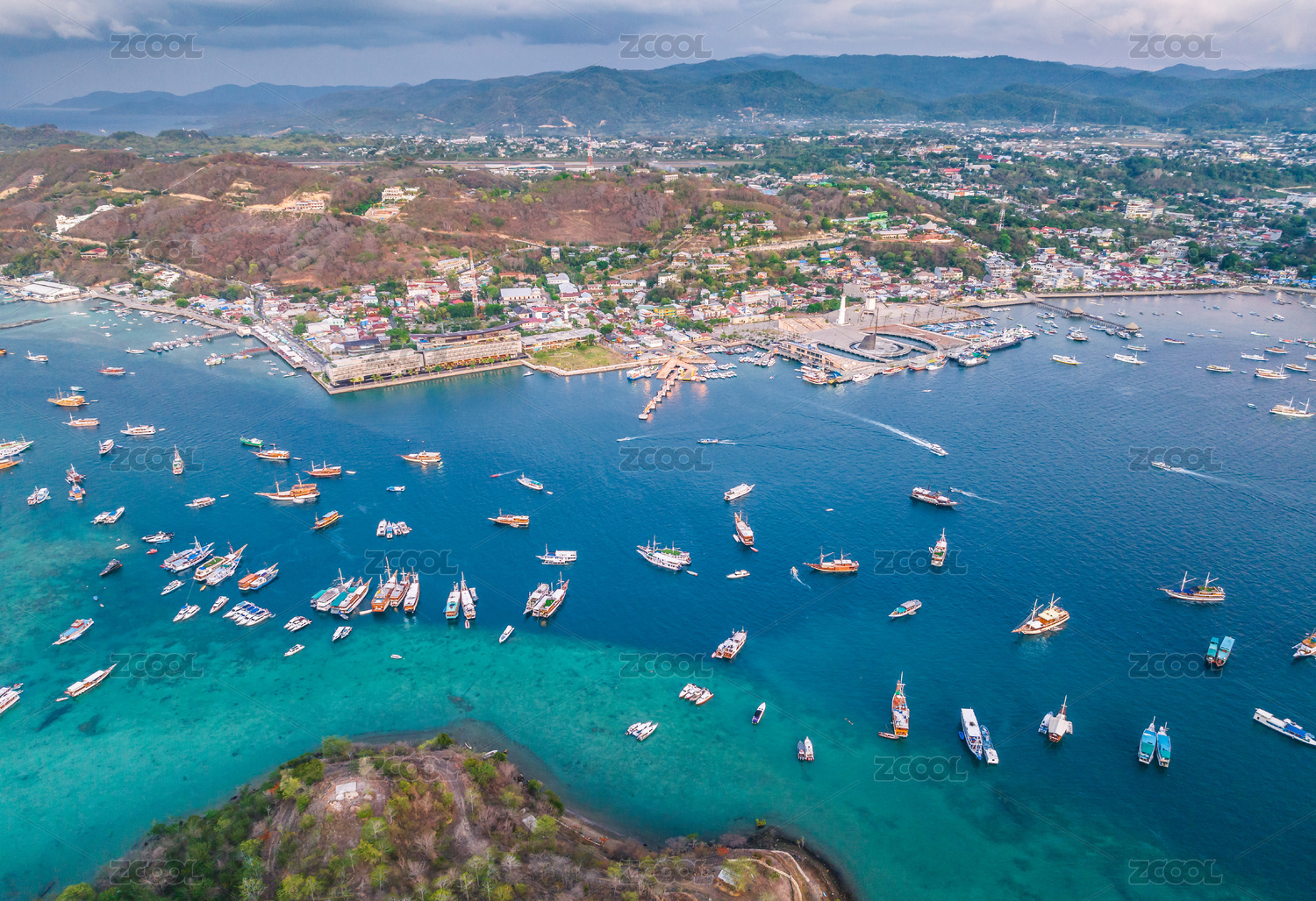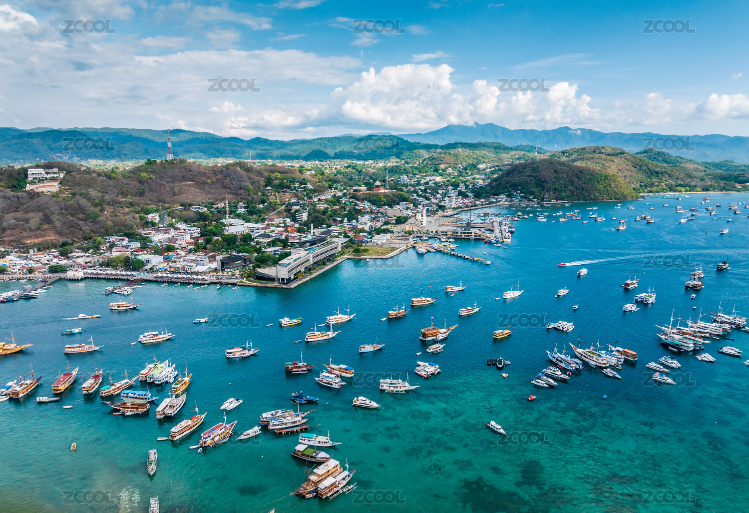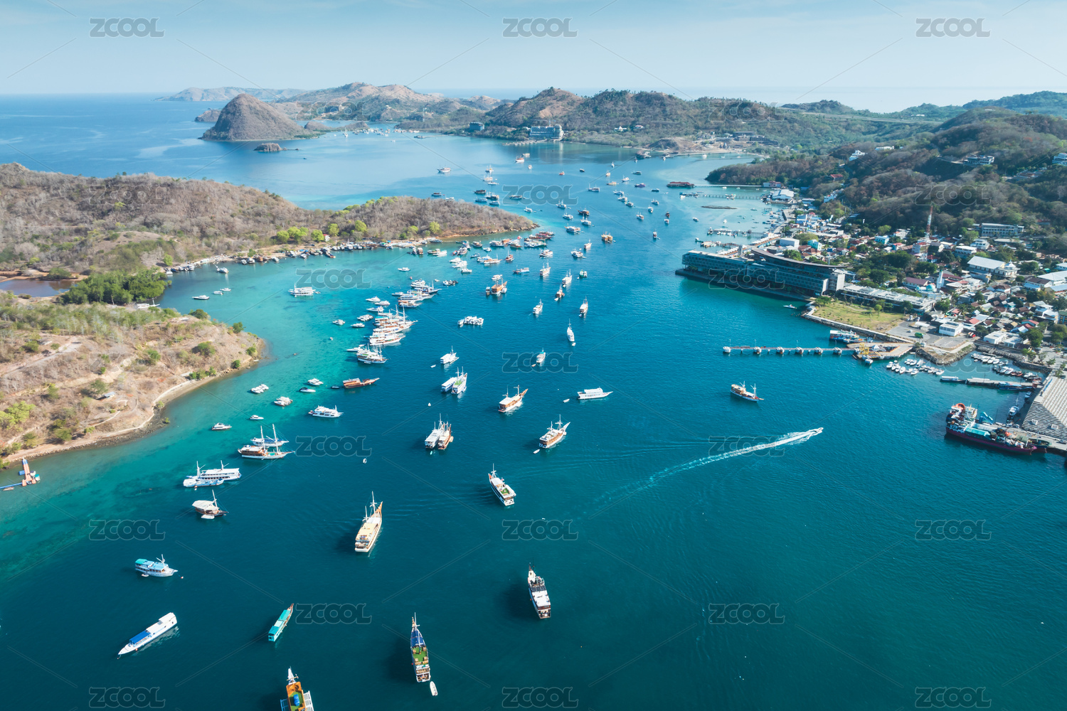 印度尼西亚科莫多拉布汉巴焦海上船舶航拍风