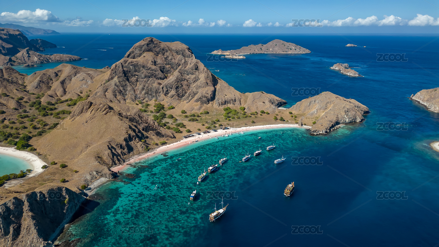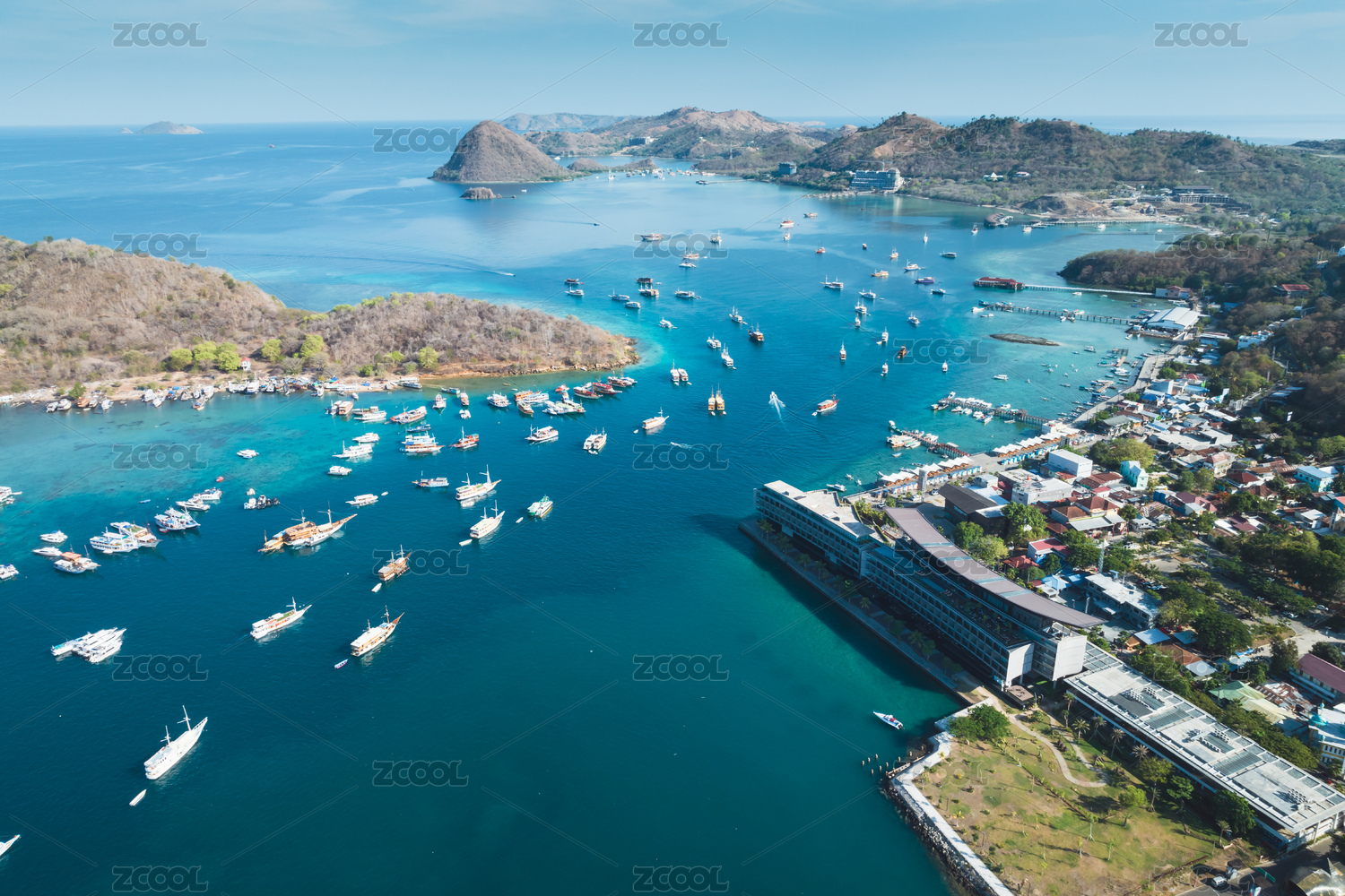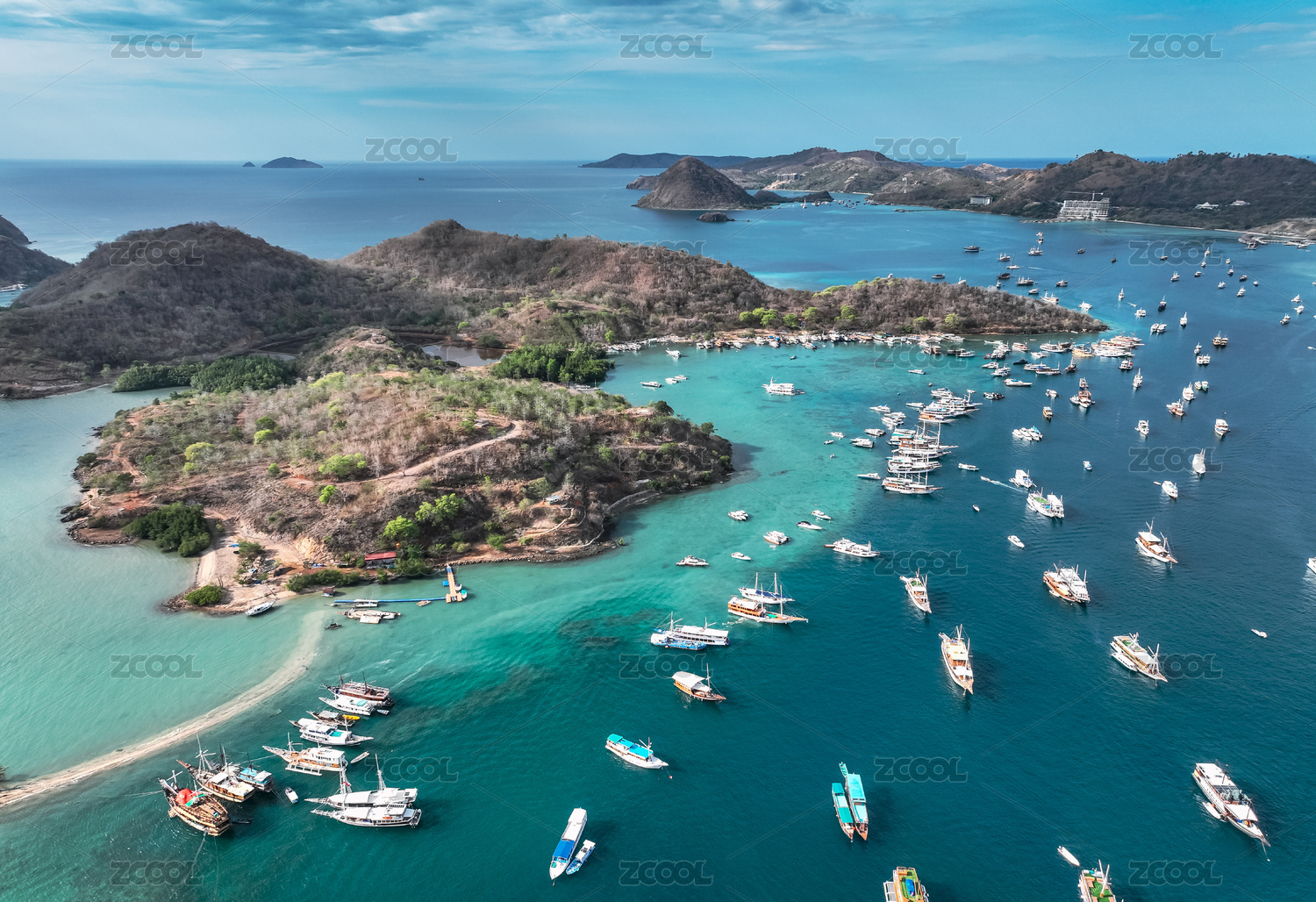 印尼科莫多帕达尔岛海湾船舶自然风光航拍
