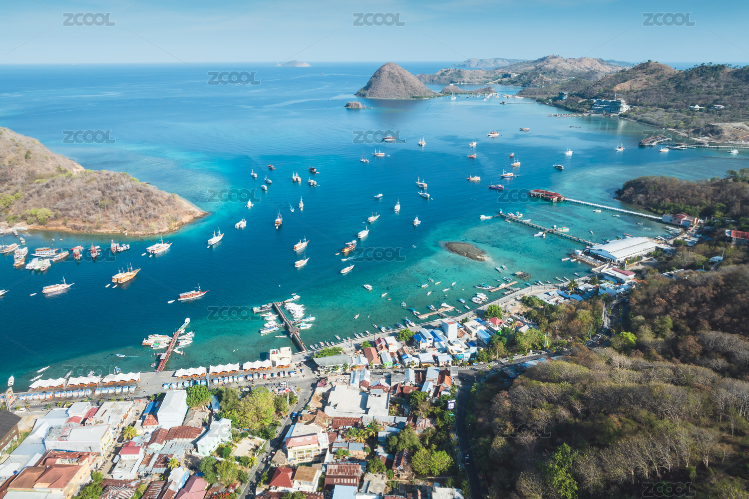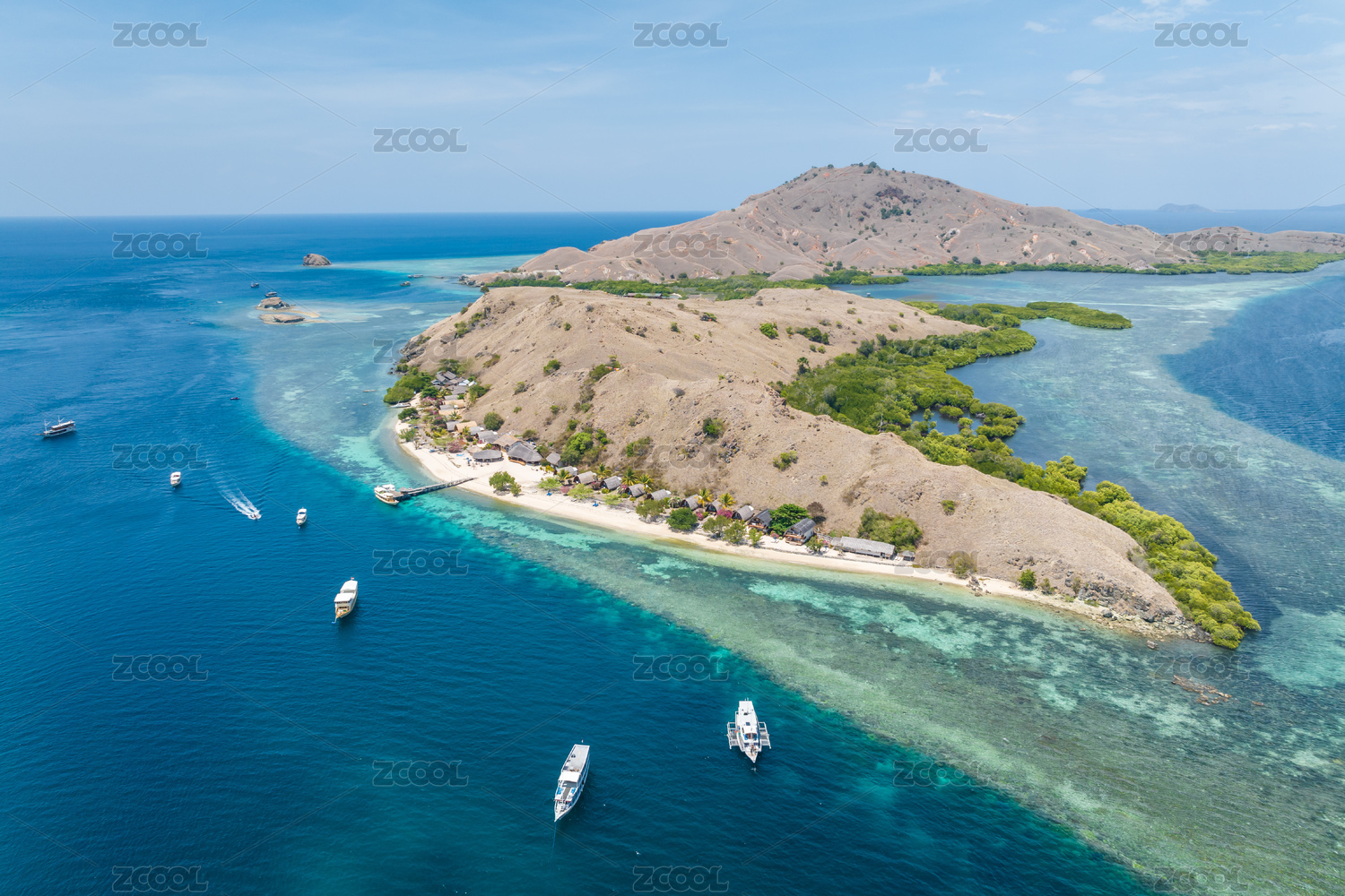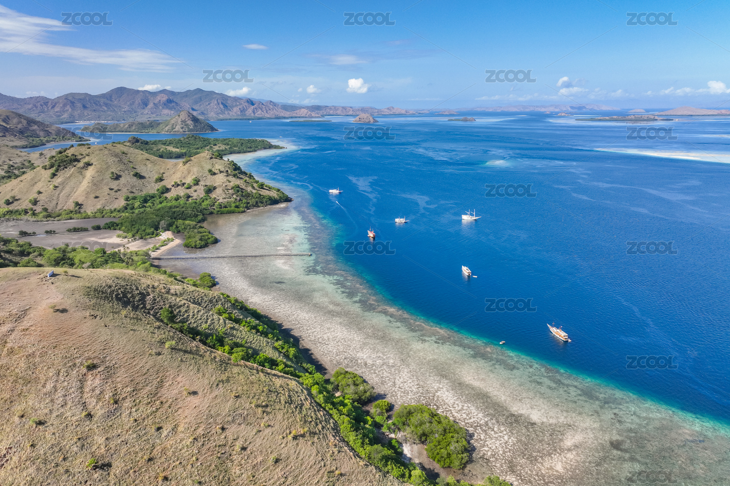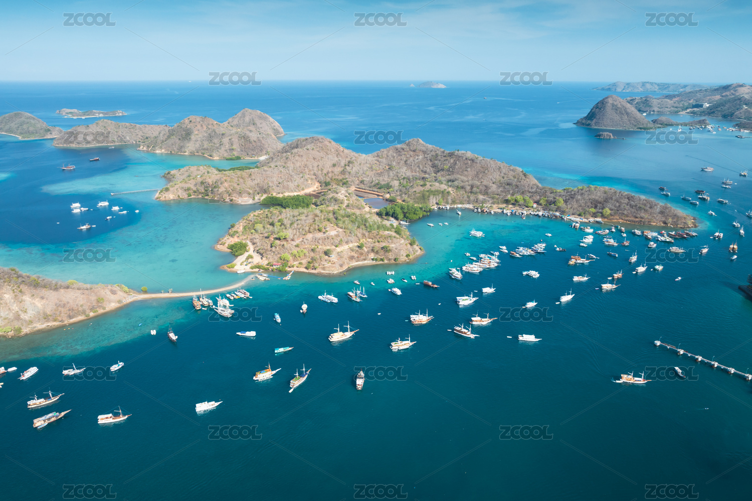 印尼科莫多帕达尔岛海湾船舶自然风光航拍