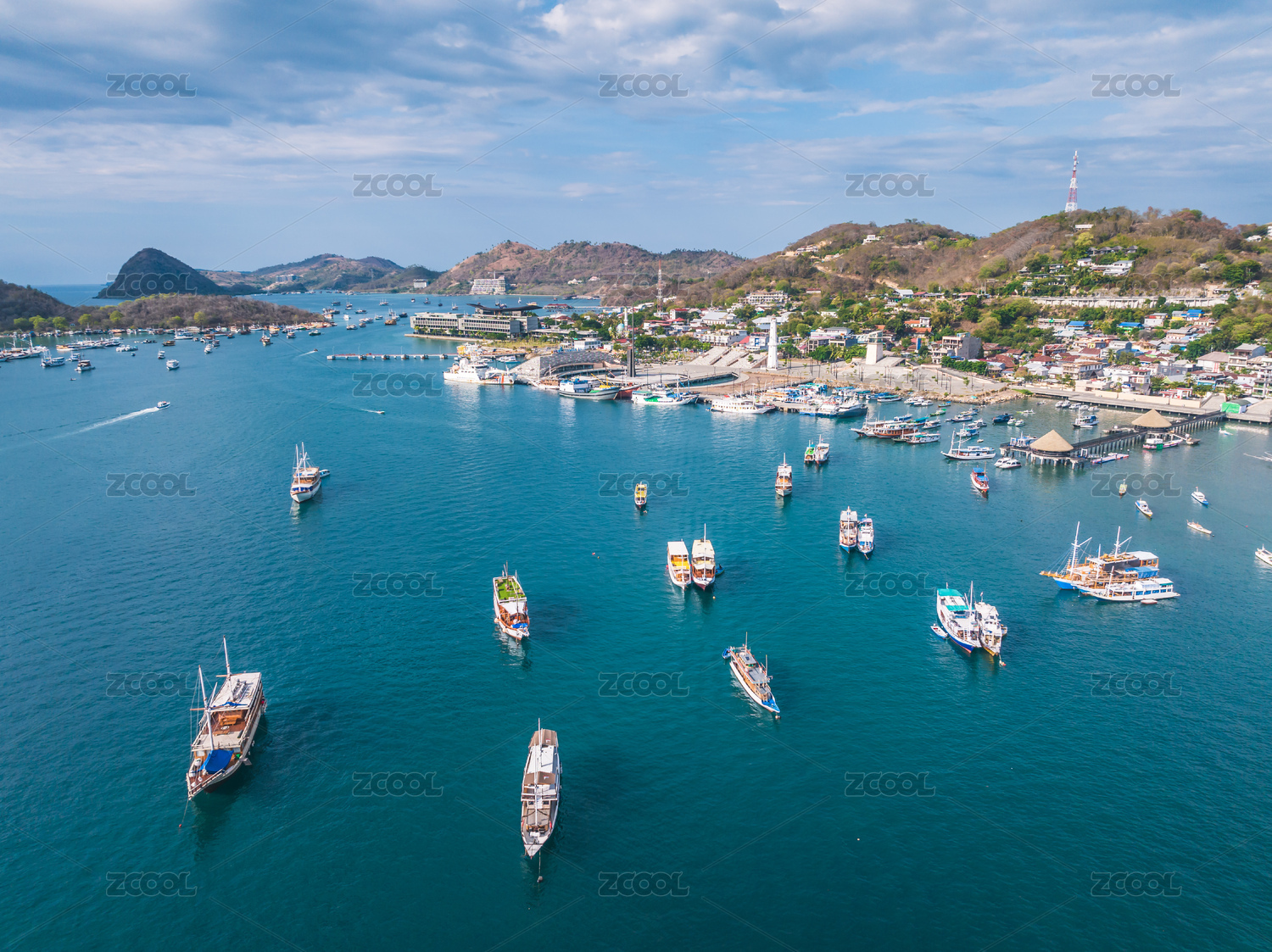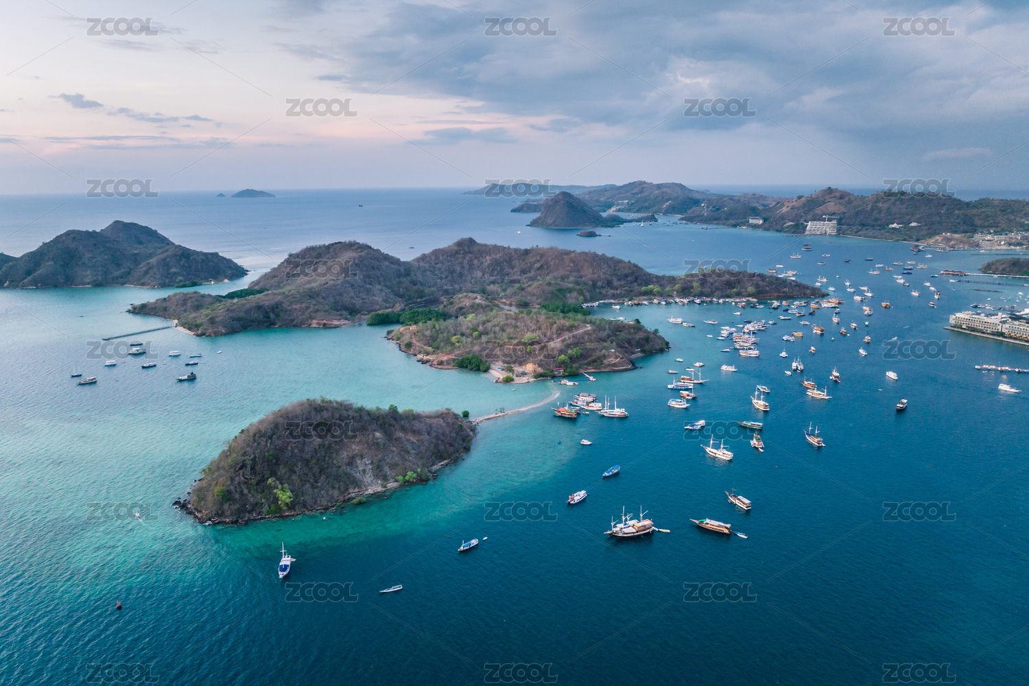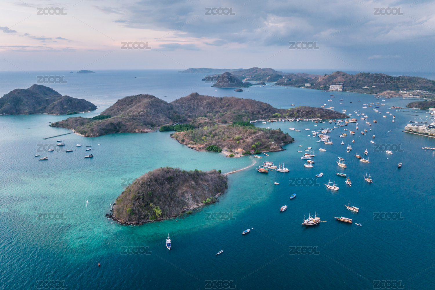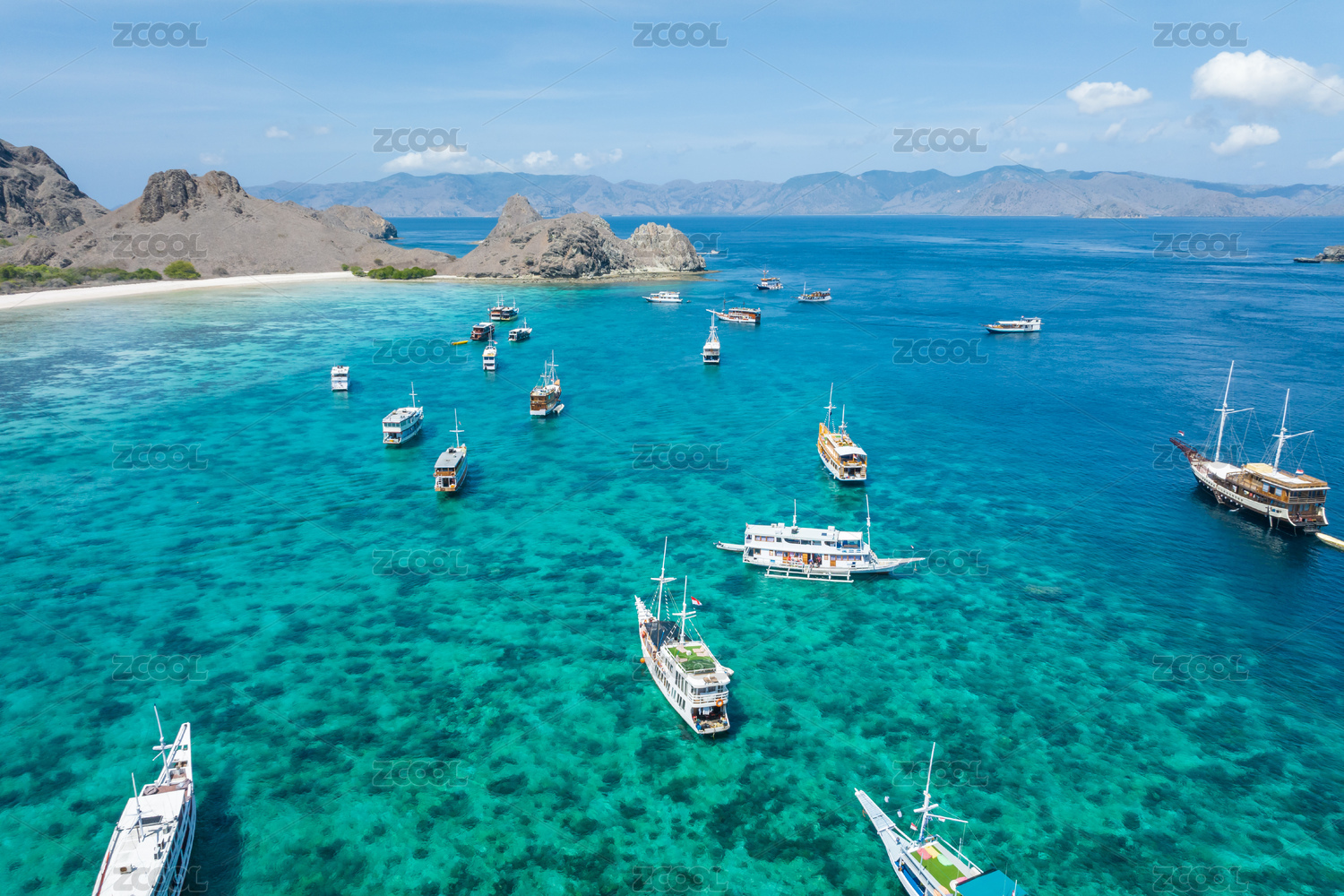 印尼科莫多拉布安巴焦海上船舶航拍风光