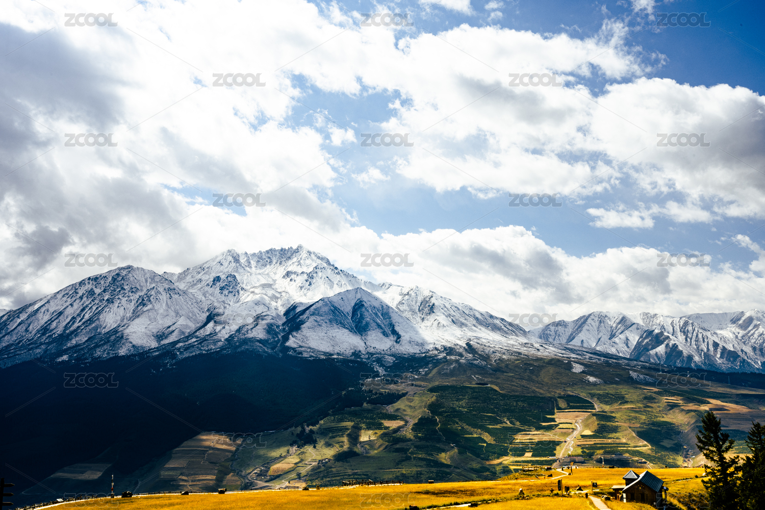 中国四川甘孜州高尔寺贡嘎雪山风光