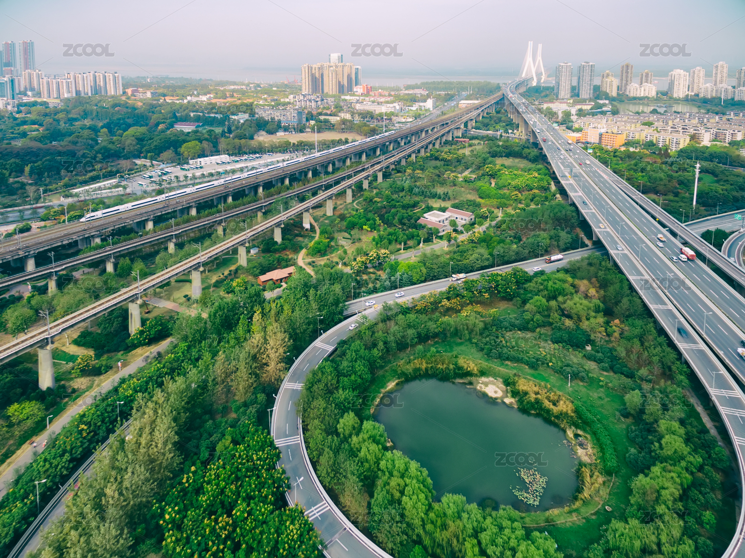 航拍视角,武汉,景观设计,公园,城市,公路,户外,汽车,建筑,桥