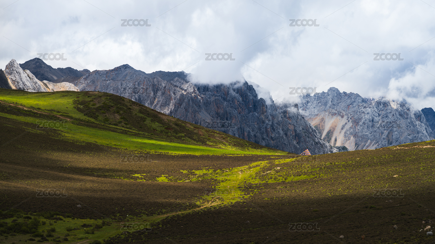 扎尕那,古城,迭部县,甘肃,甘南藏族自治州,山,山峰,岩石,小镇,绿色