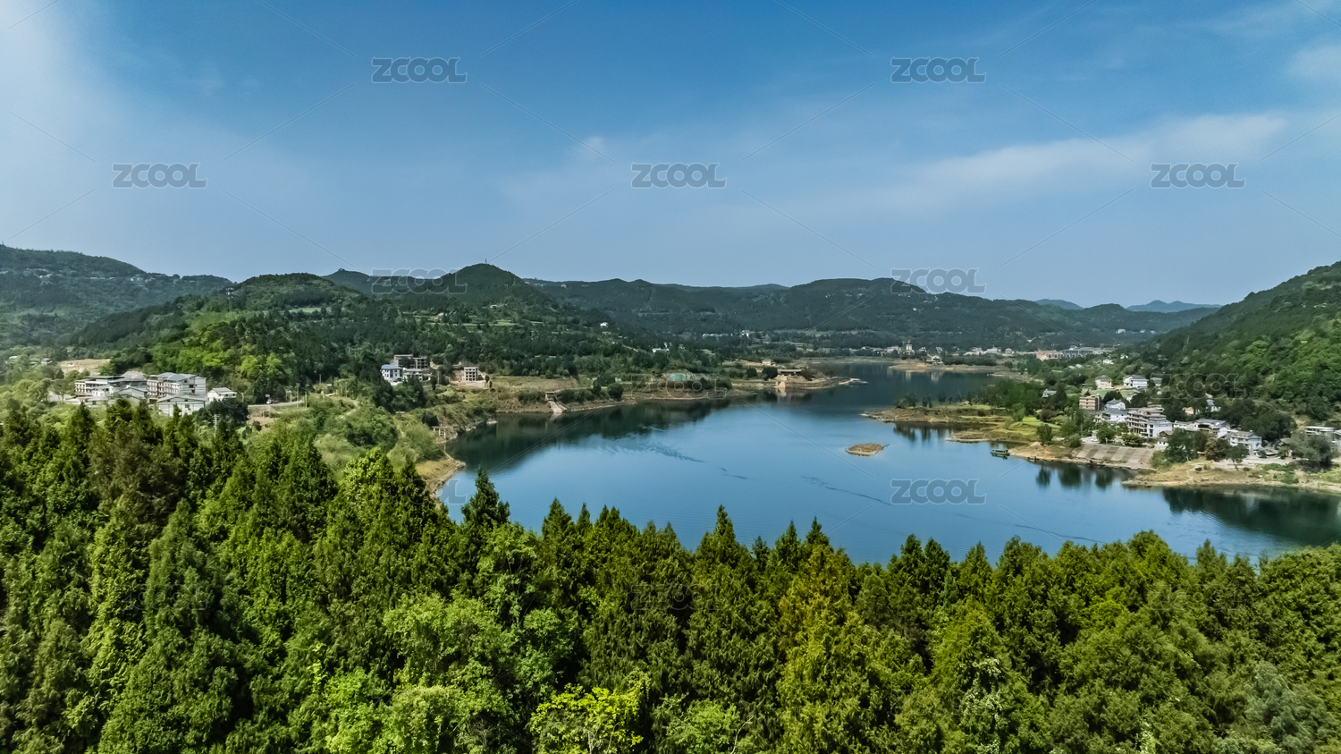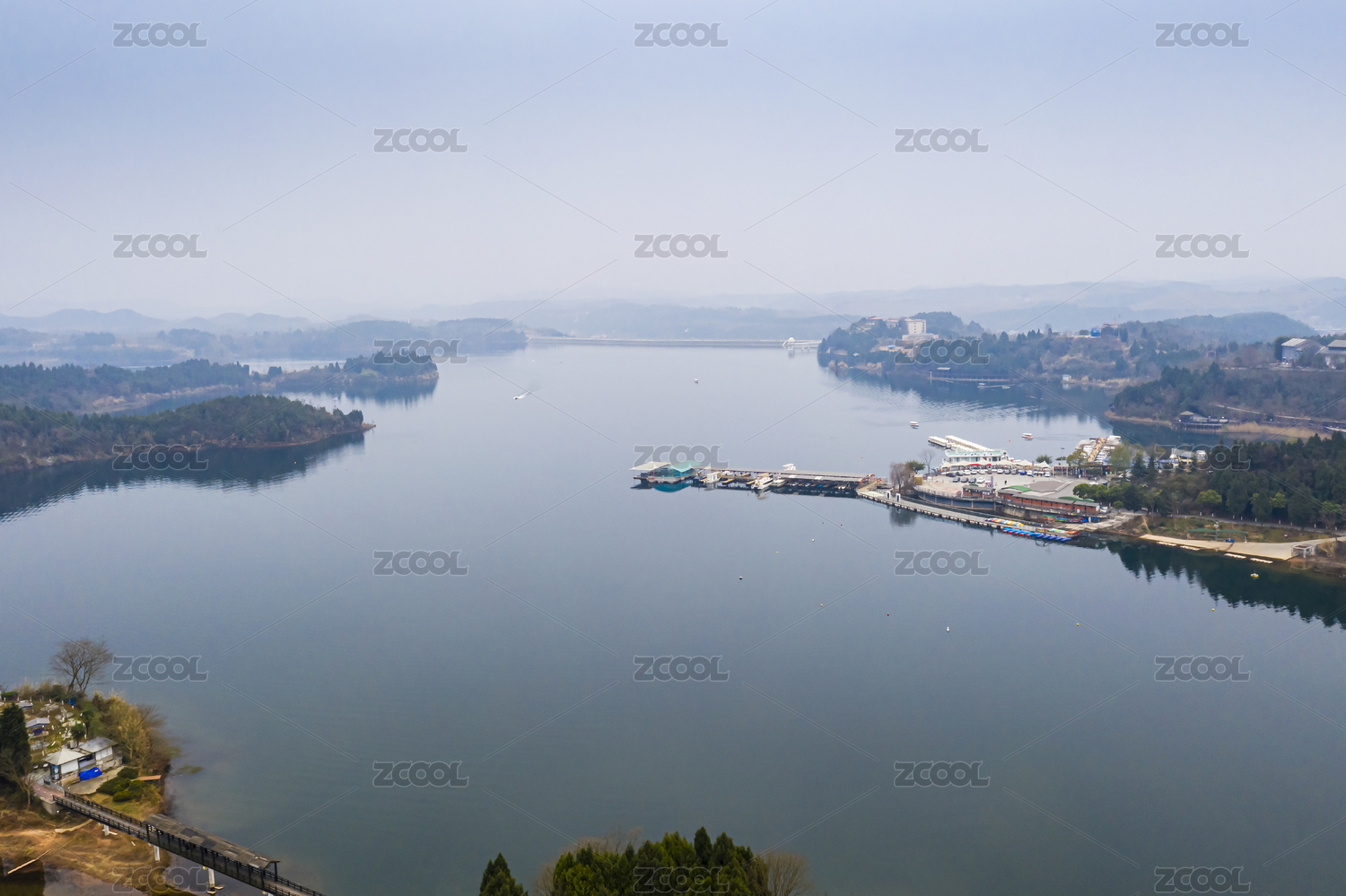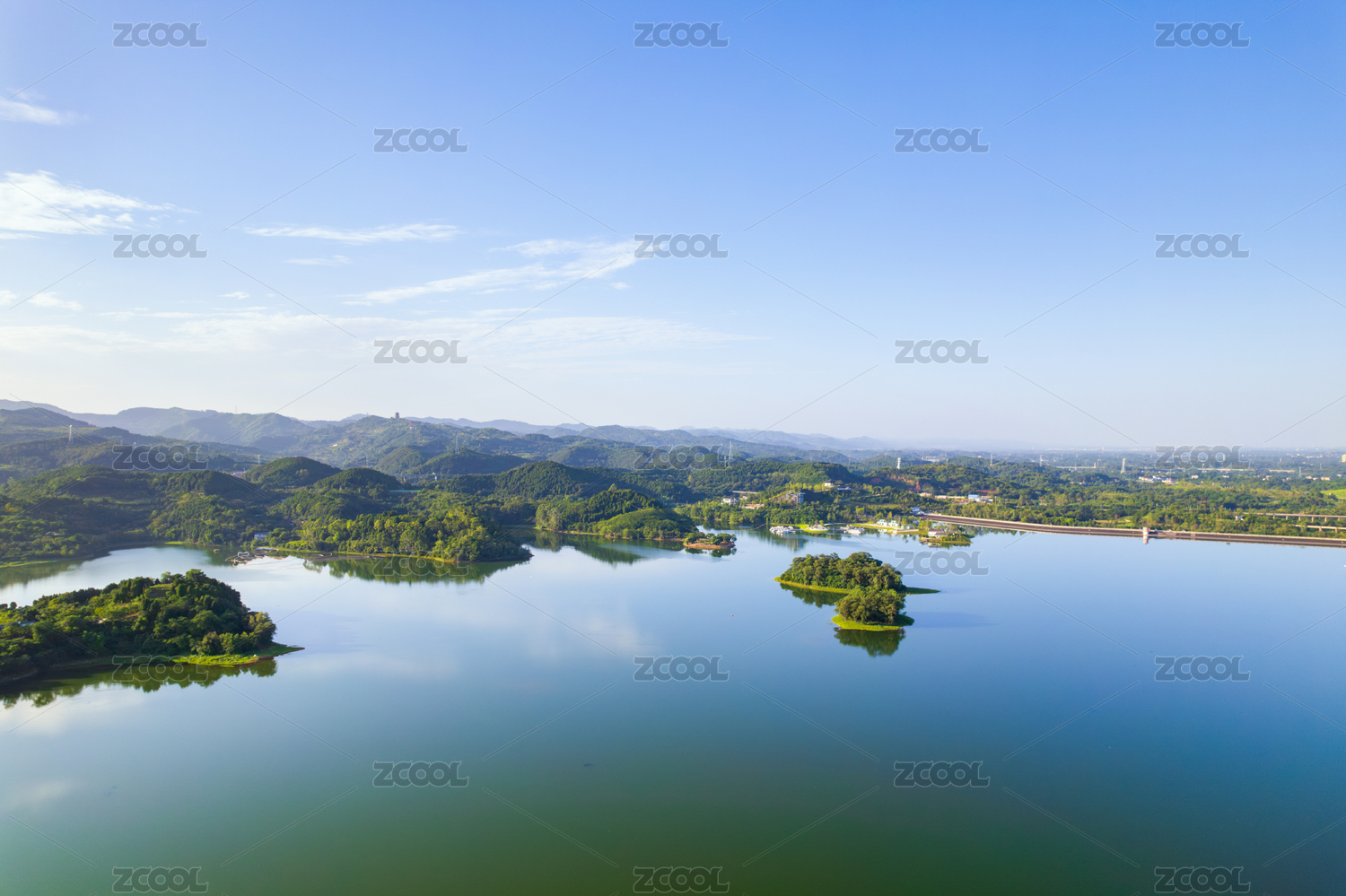 成都东部新区简阳三岔湖景区水库白昼航拍