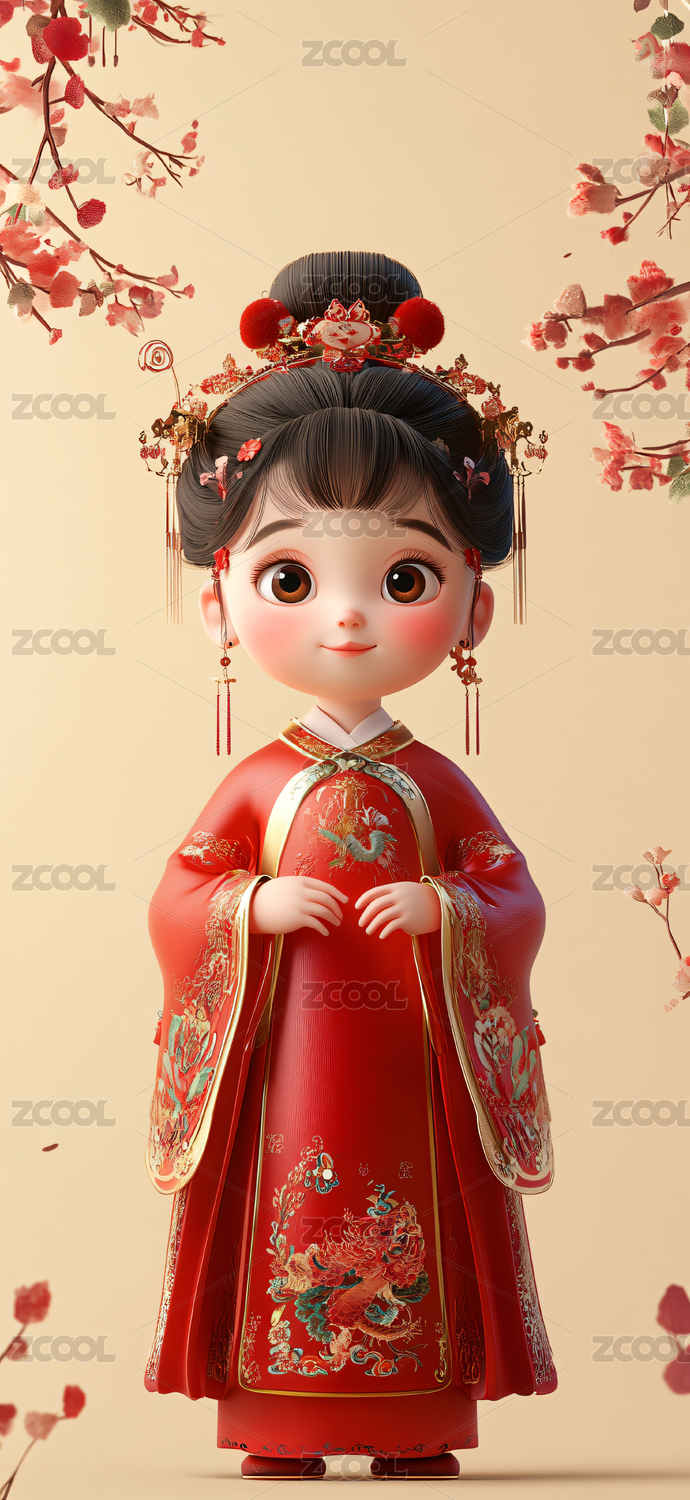 精致古风3D小女孩儿传统服饰